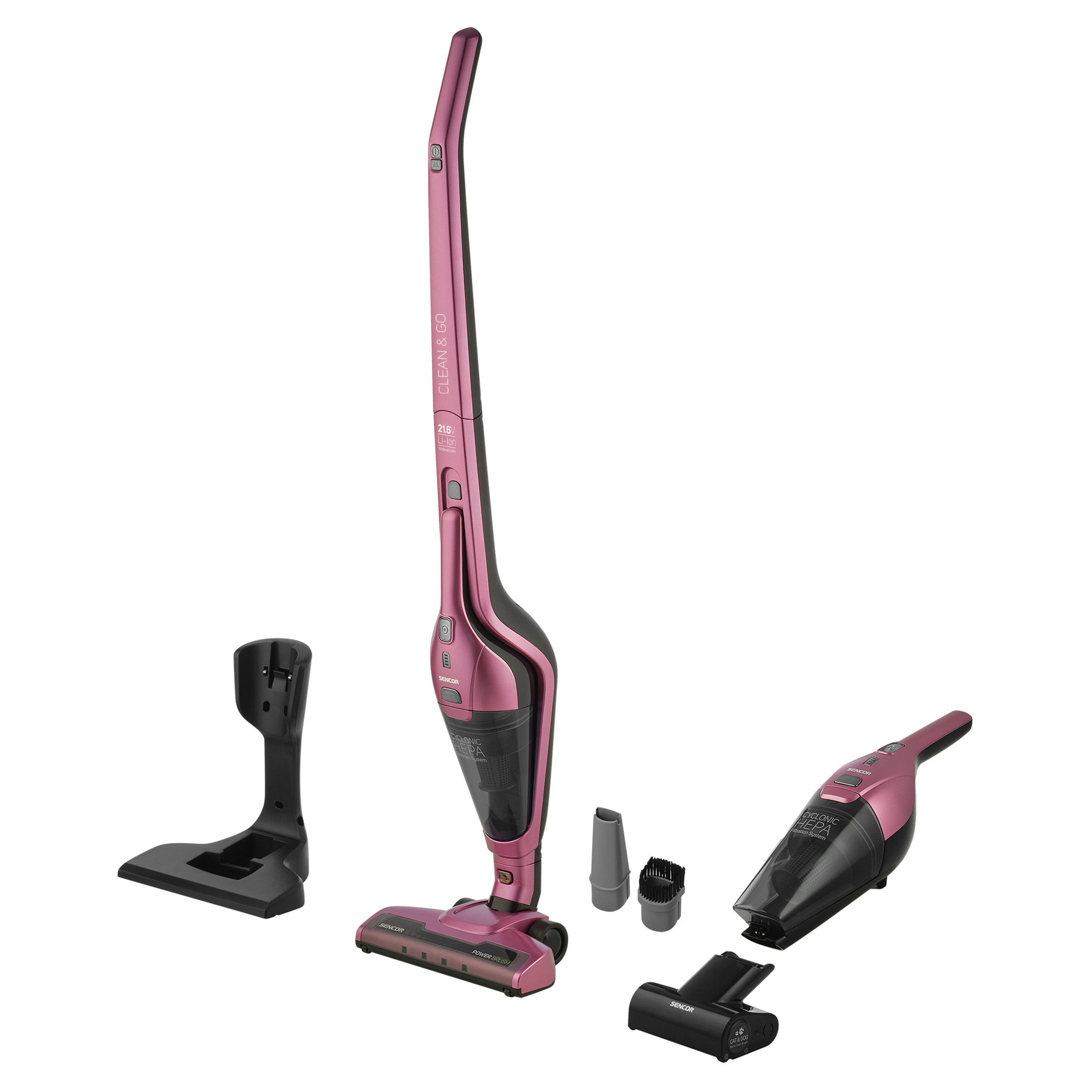 A Sencor SVC 0604RD többfunkciós porszívó, mely 3 az 1-ben kialakítással rendelkezik. A készülék kiválóan működik porszívóként, de az egyszerűen kivehető kézi egység lehetővé teszi, hogy morzsaporszívóként használd a konyhában, étkezőben vagy autóban is. A Cat & Dog Mini motoros kefével pedig a háziállat szőrszálait is könnyedén eltávolíthatod a kárpitokról, szőnyegekről.