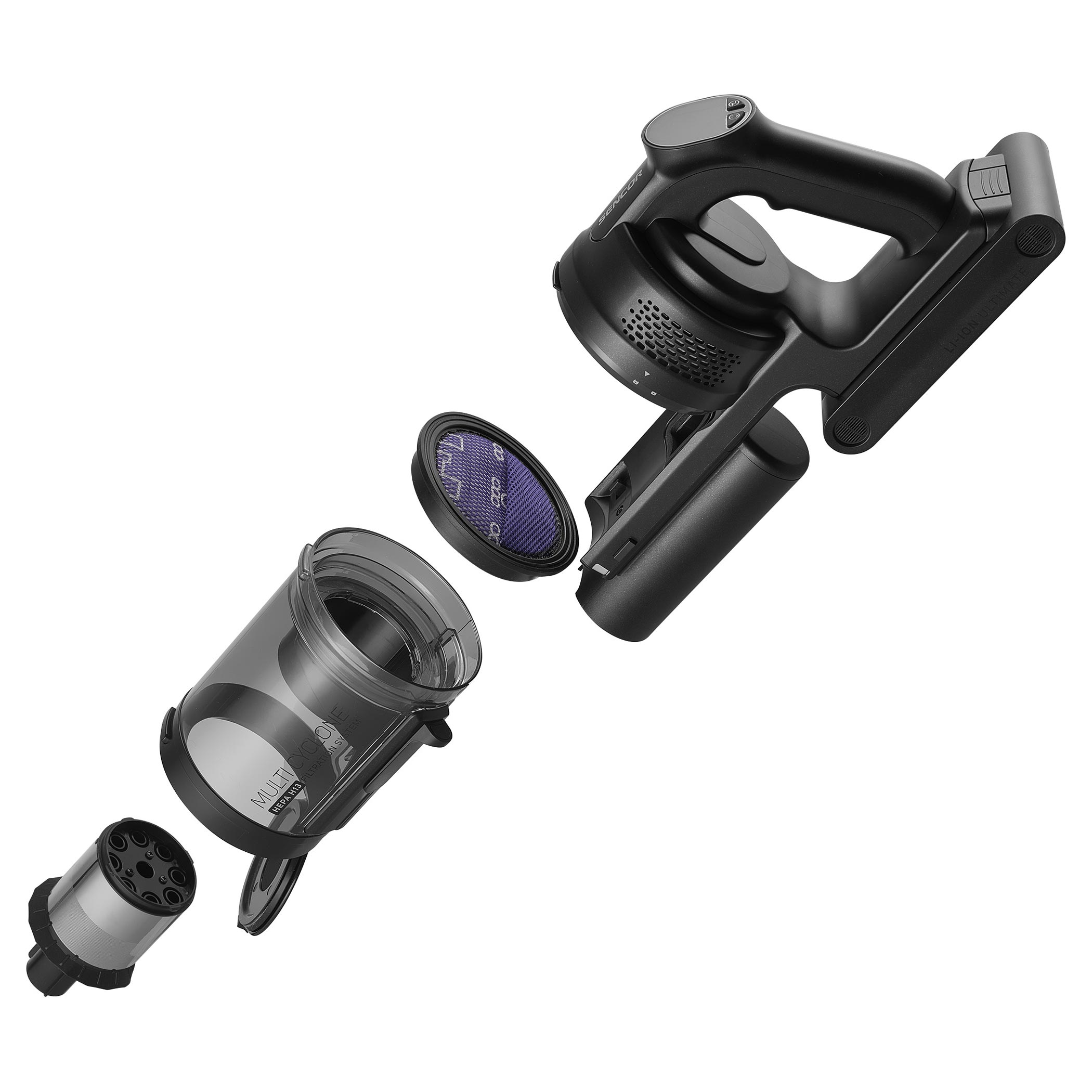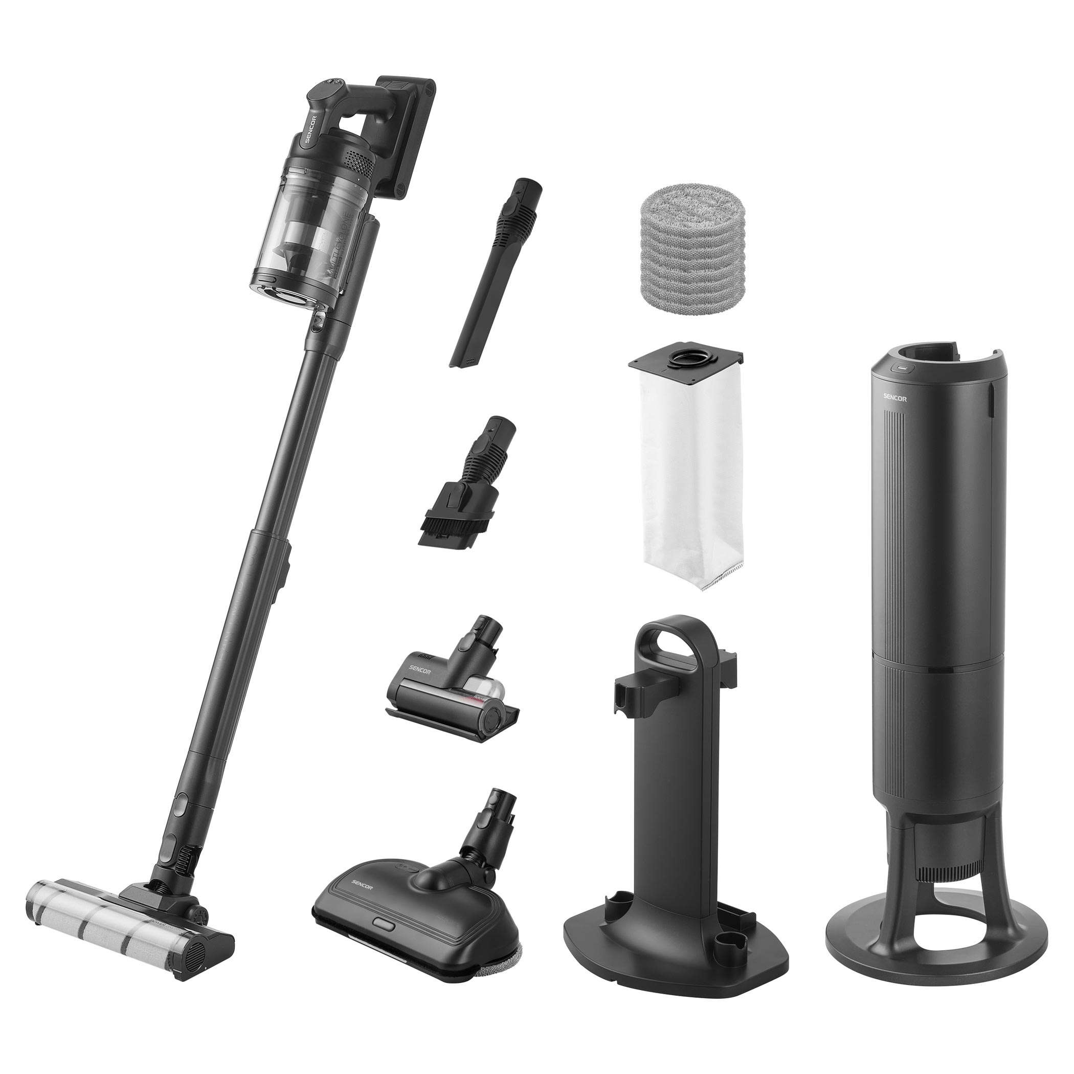 Az SVC 9476BK 500 W-os digitális motorral és H13 HEPA szűrővel ellátott többciklonos szűréssel rendelkezik a hosszan tartó, erős szívóteljesítmény érdekében. Az intelligens Smart Dust Sensor automatikusan szabályozza a szívóerőt a szennyezettség mértéke szerint, optimalizálva az energiafogyasztást és meghosszabbítva az üzemidőt. Alap fokozaton az üzemidő akár 55 perc. A MicroDust Vision LED világítással és UV-C sterilizálással ellátott motoros padlófej láthatóvá teszi a port és fertőtleníti a felületeket. Az Aqua Spin felmosófej egy lépésben teszi lehetővé a porszívózást és felmosást, míg a Cat & Dog UV-C technológiás, motoros forgókefe mélyen tisztítja a kárpitokat és matracokat, eltávolítva a szőrt, hajat, baktériumokat és atkákat.Fő jellemzők: