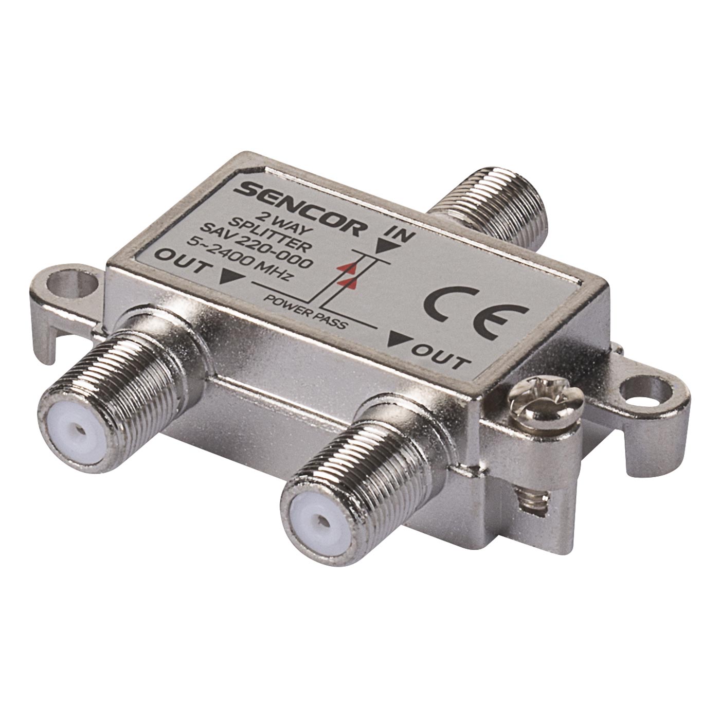 Antennaelosztó 2 kimenettel, dugós csatlakozókkal: 3× koaxiális csatlakozó (F), egyenes végződéssel