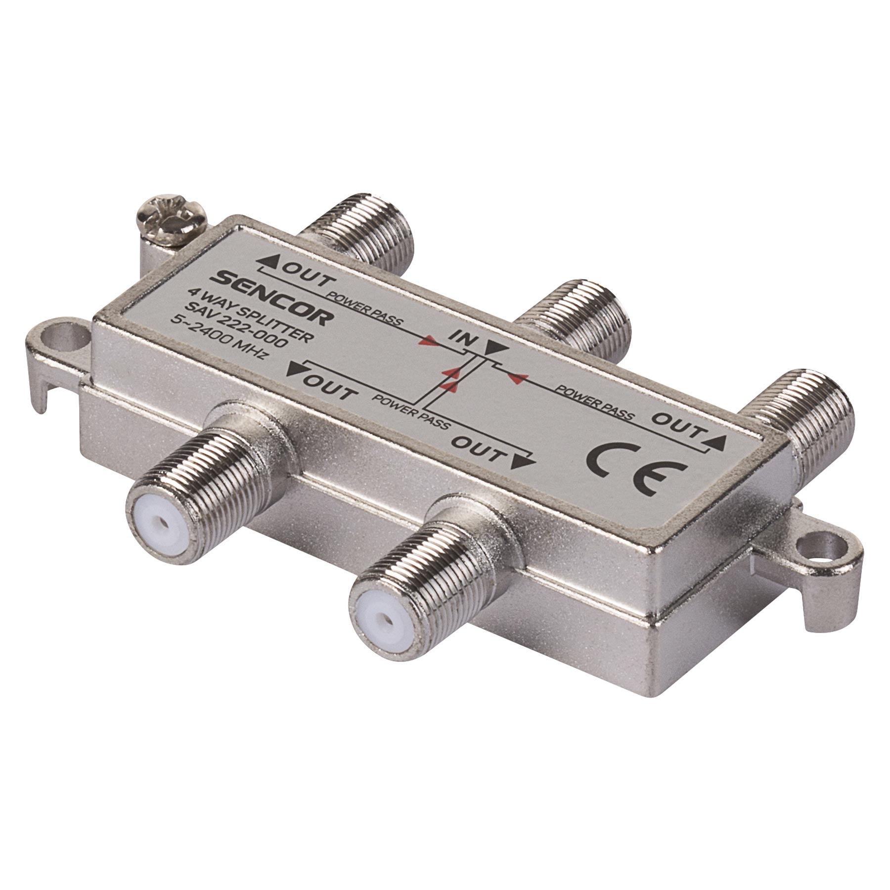 Antennaelosztó 4 kimenettel, dugós csatlakozókkal: 5× koaxiális csatlakozó (F), egyenes végződéssel