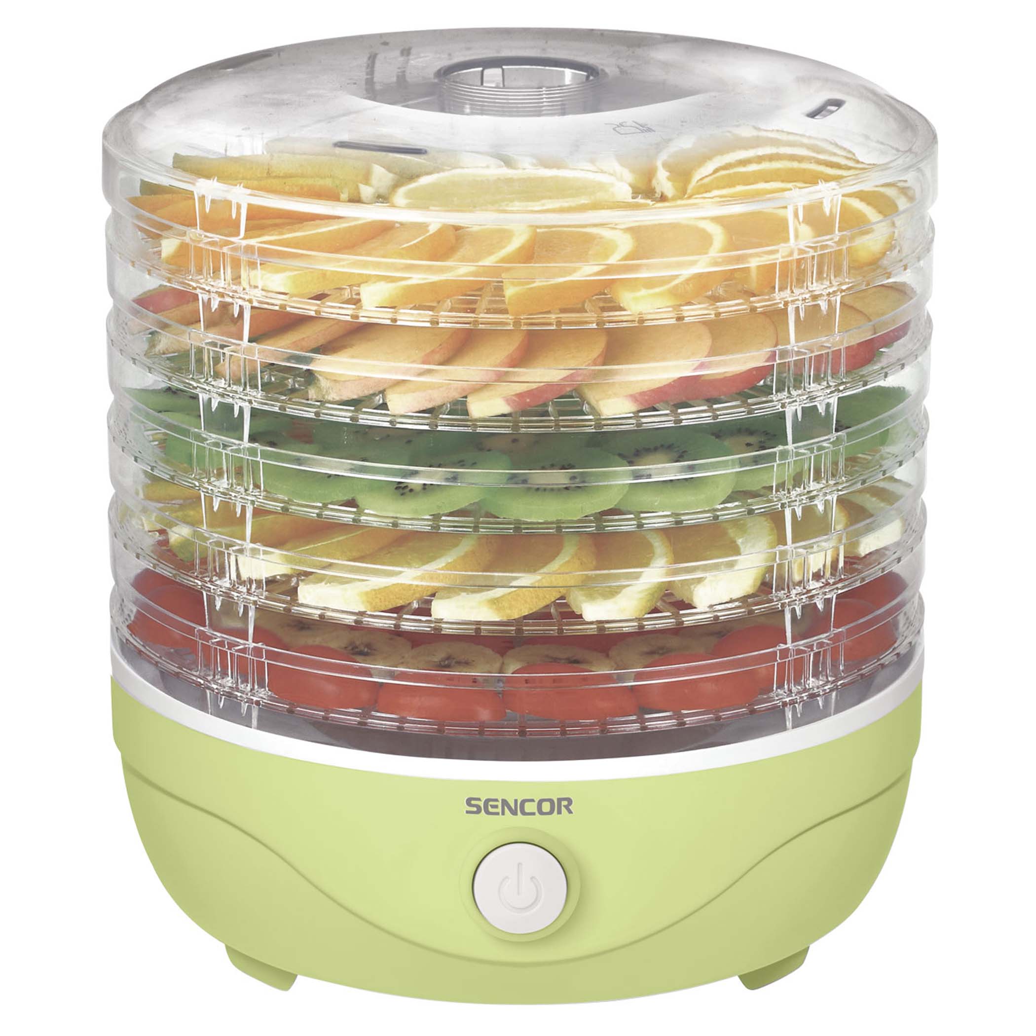 A Sencor SFD 757GG aszaló 5 db szárító tálcával rendelkezik. A tálcák 230 mm átmérővel rendelkeznek és a szárítási szintek manuálisan állíthatók. Segítségével különböző aszalt gyümölcsöket, gyógynövényeket, gombákat, húsokat vagy akár halakat száríthatunk. A beépített ventilátor gondoskodik az egyenletes szárításról mindegyik szinten, a szárító sziták rácsának kialakítása pedig megakadályozza a penész keletkezését és optimalizálja a légáramlást. Az átlátszó borítás lehetővé teszi a szárítási folyamat teljeskörű ellenőrzését.