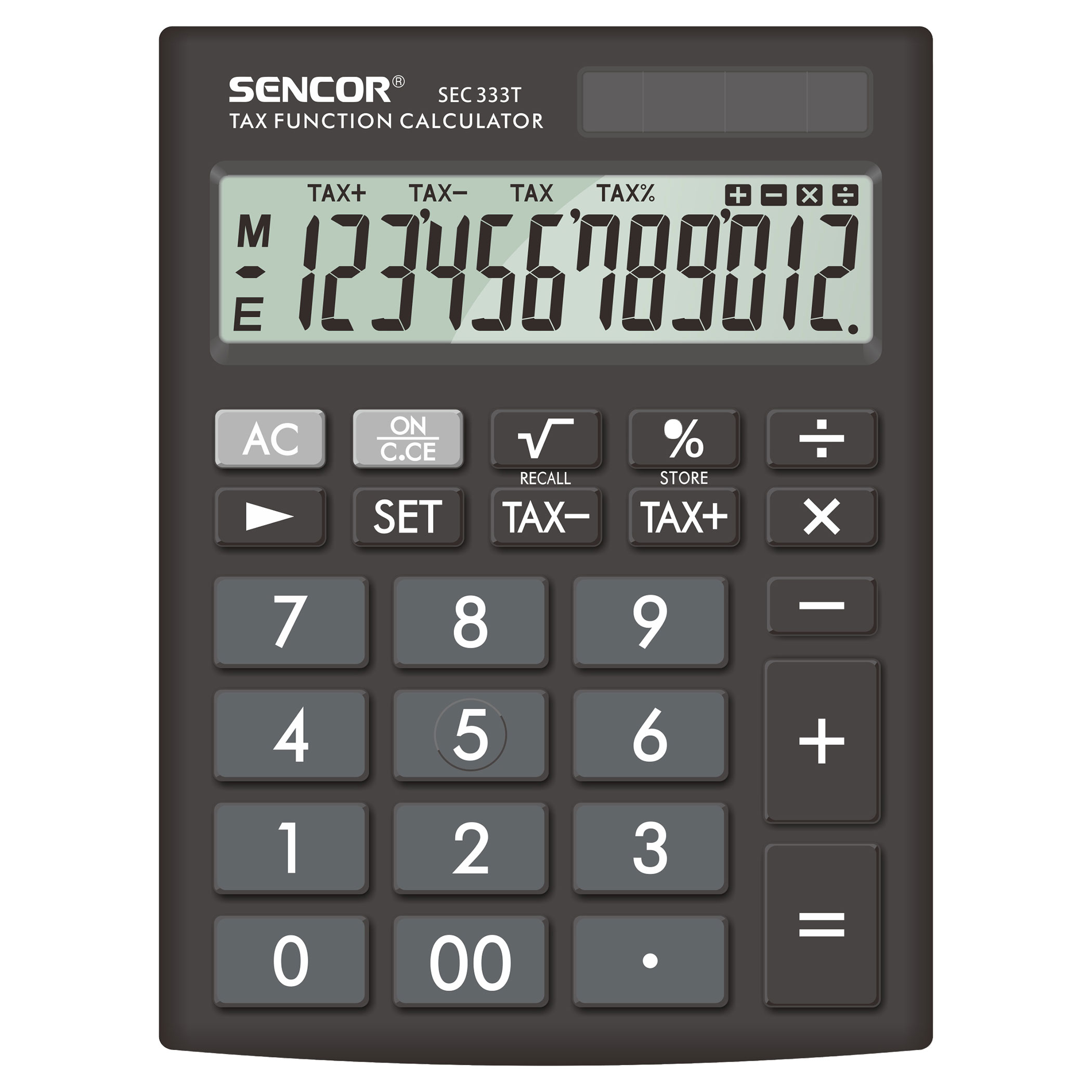 A Sencor SEC 333T praktikus asztali számológép univerzális segédeszközként használható. Fő előnye a 12 számjegyű LCD kijelző, amely lehetővé teszi a kényelmes munkát és a számjegyek jó láthatóságát. A számológép változó jelekkel (+/-), négyzetgyök számítási lehetőséggel, ÁFA számítási funkcióval és memóriával egy szám megjegyzésére és egyéb hasznos funkciókkal rendelkezik. A kettős áramellátó rendszer (napelem és akkumulátor) biztosítja a megbízhatóságot és a hosszú élettartamot