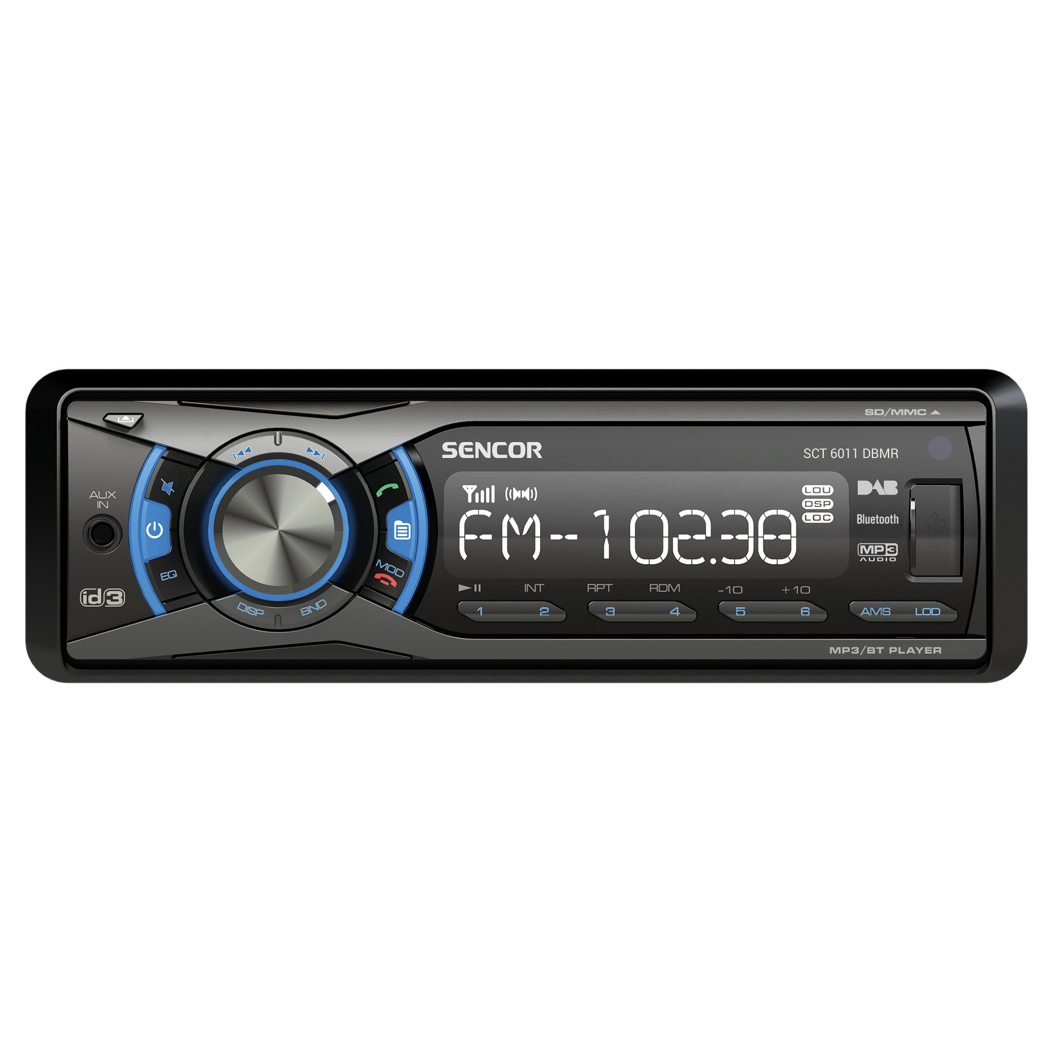 A Sencor SCT 6011DBMR autórádió stílusos megjelenésével, kék LED-es háttér-világítással kiváló tartozéka lesz autójának. A rádió egy 32 GB-os USB porttal rendelkezik, ezen felül támogatja a SD / MMC memóriakártyákat szintén 32GB méretig. Gondtalanul hallgathatja kedvenc zenéit MP3, WMA, FLAC, WAV és AAC formátumban. A készülék DAB + hangolással rendelkezik, valamint PLL digitális FM/AM tunerrel a gondtalan rádióhallgatásért, Bluetooth 2.1 lehetőségnek köszönhetően pedig telefonhívásait is fogadhatja autójában. A rádió maximum 4 X 40 Watt teljesítményű hangszórókkal használható. A készüléke előlapja teljes mértékben levehető, és biztonságba helyezhető. Kék színű megvilágítással rendelkezik.