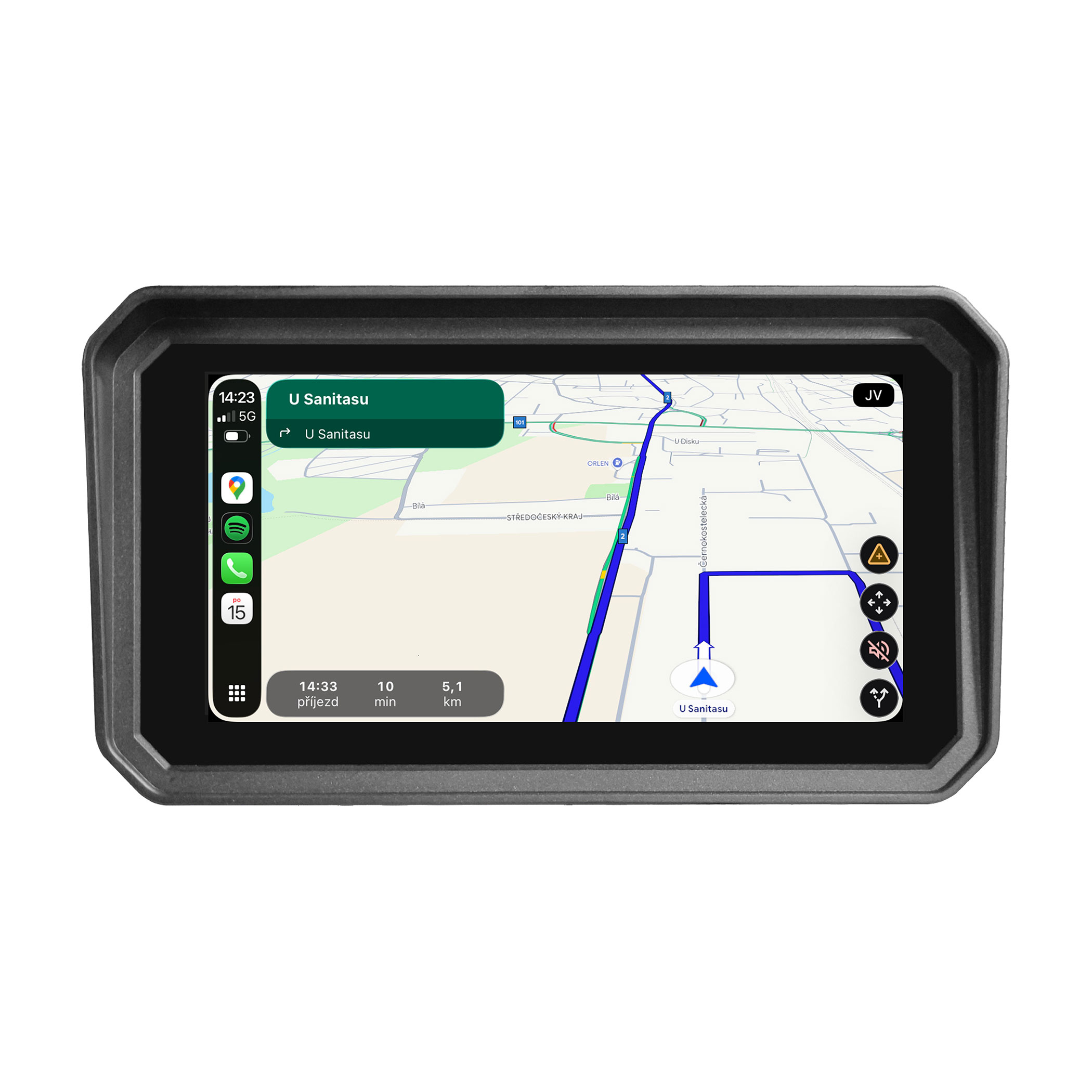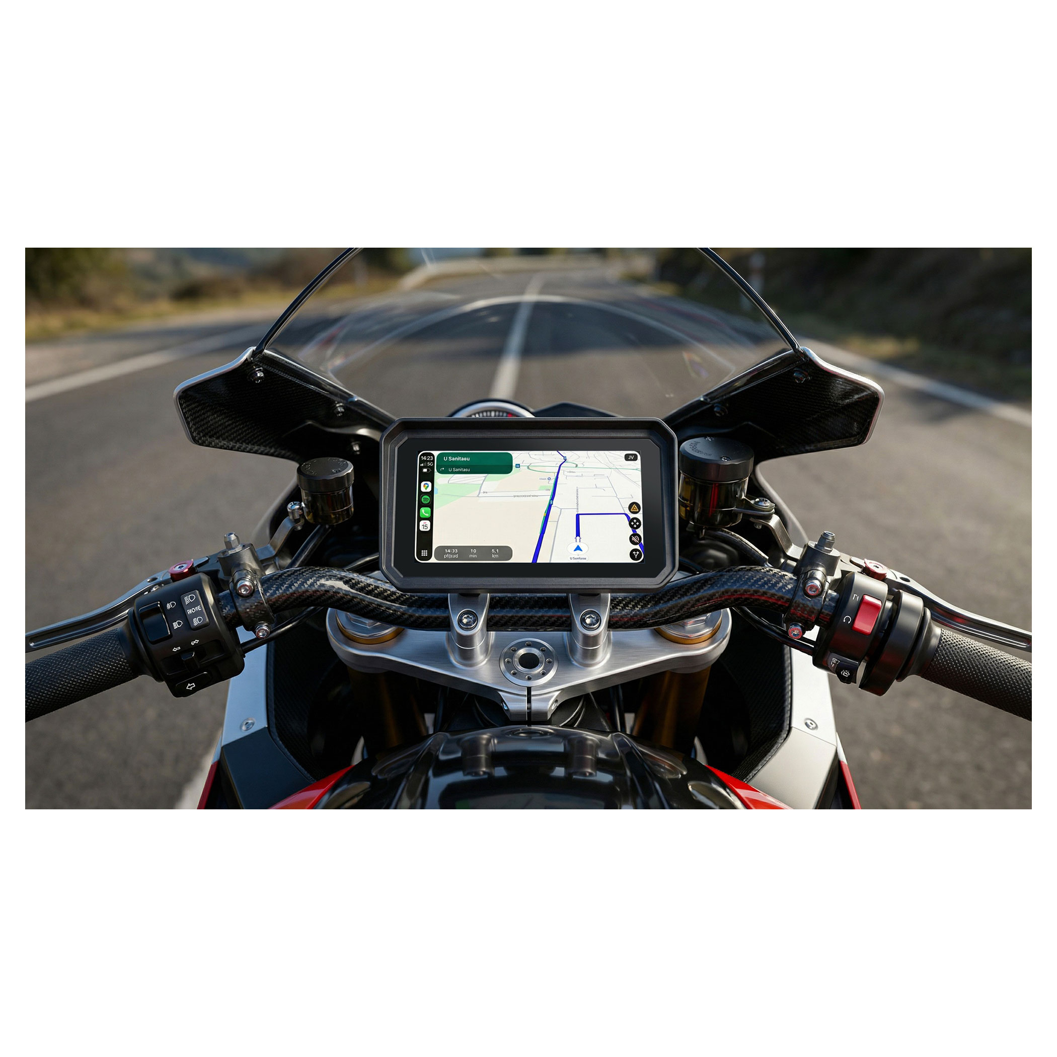 A Sencor SCT MC600BW motoros kijelző modern és biztonságos megoldást kínál a navigációhoz és a telefonos funkciók használatához motorozás közben. A vezeték nélküli Apple CarPlay és Android Auto támogatás segítségével könnyedén hozzáférhet a navigációhoz, hívásokhoz, üzenetekhez vagy kedvenc alkalmazásaihoz anélkül, hogy a telefonját kézbe kellene vennie.