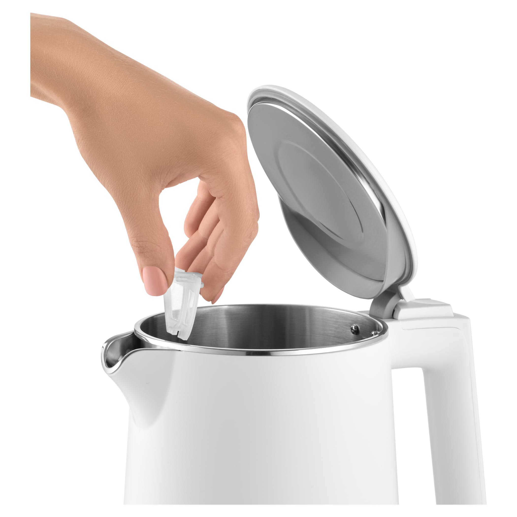 A belső rész kiváló minőségű SUS 304 rozsdamentes acélból készült, amely garantálja a tisztaságot és az italok eredeti ízének megőrzését. A Cool Touch rendszerrel működő automatikus fedélnyitás megkönnyíti a feltöltést, a kivehető és mosható szűrő pedig hatékonyan védi a vizet a szennyeződésektől és a vízkőtől. A rejtett fűtőszál szintén rozsdamentes acél aljzat alatt helyezkedik el, ami nemcsak esztétikus, de egyszerűbb tisztítást is biztosít.