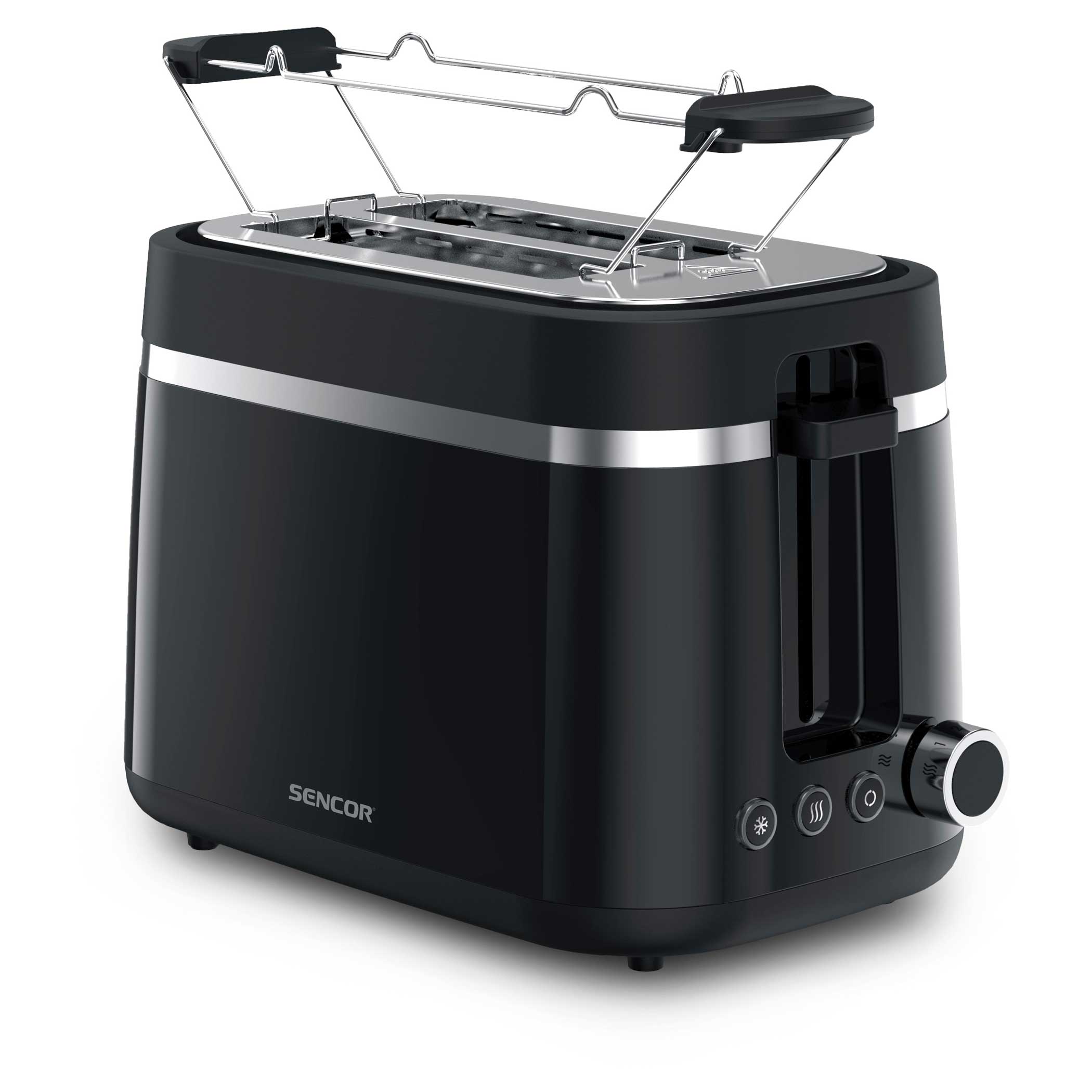 A Sencor STS 2710BK kenyérpirító praktikus funkciókkal rendelkezik, mint például a kenyér automatikus középre történő igazítása, amely lehetővé teszi a kenyér vastagságának kiválasztását. Ezenkívül képes automatikusan kiolvasztani, majd egyetlen folyamattal befejezni a fagyasztott péksütemények sütését. Praktikus a High Lift funkció, a pirítókosár úgynevezett magas emelése, amely biztosítja a még kisebb kenyérszeletek pirítását és egyben megkönnyíti a maradék részek eltávolítását.