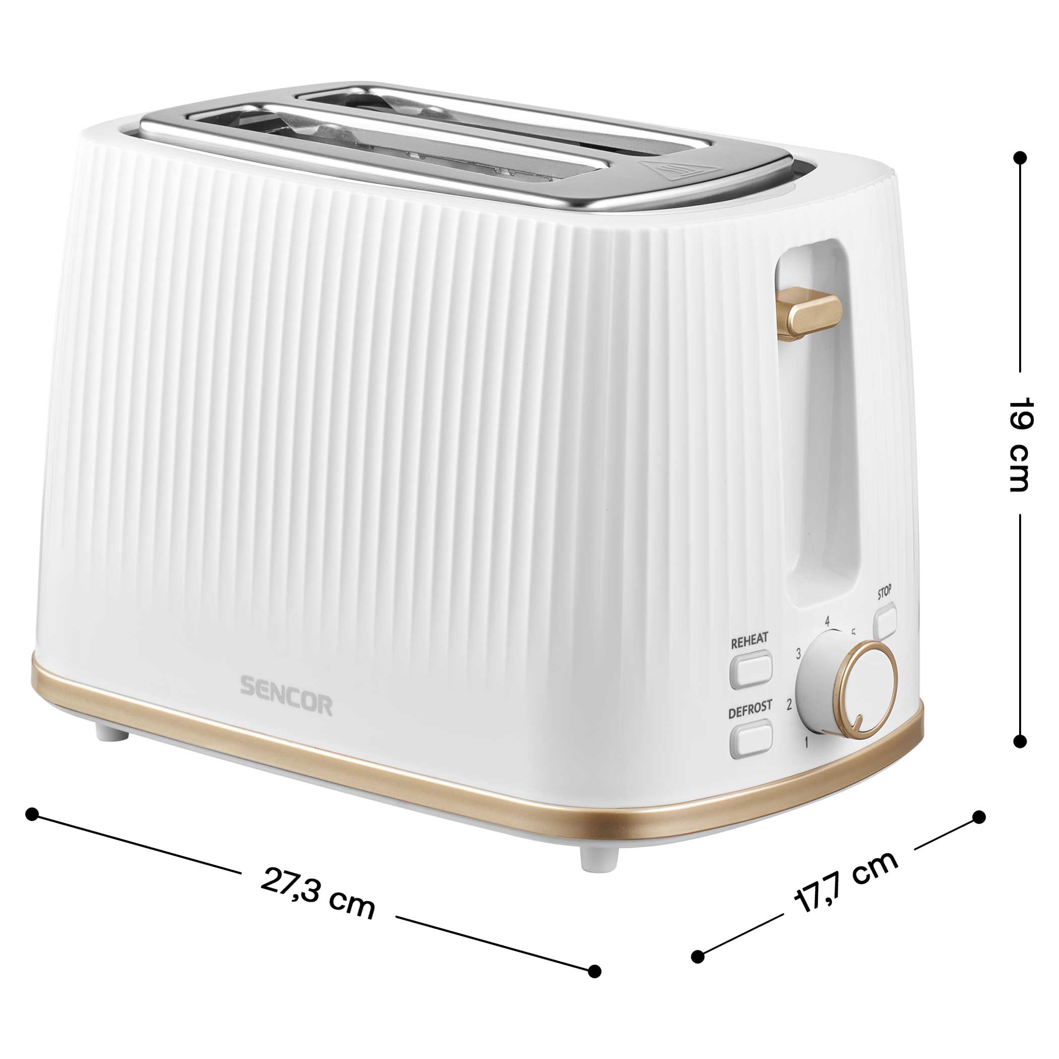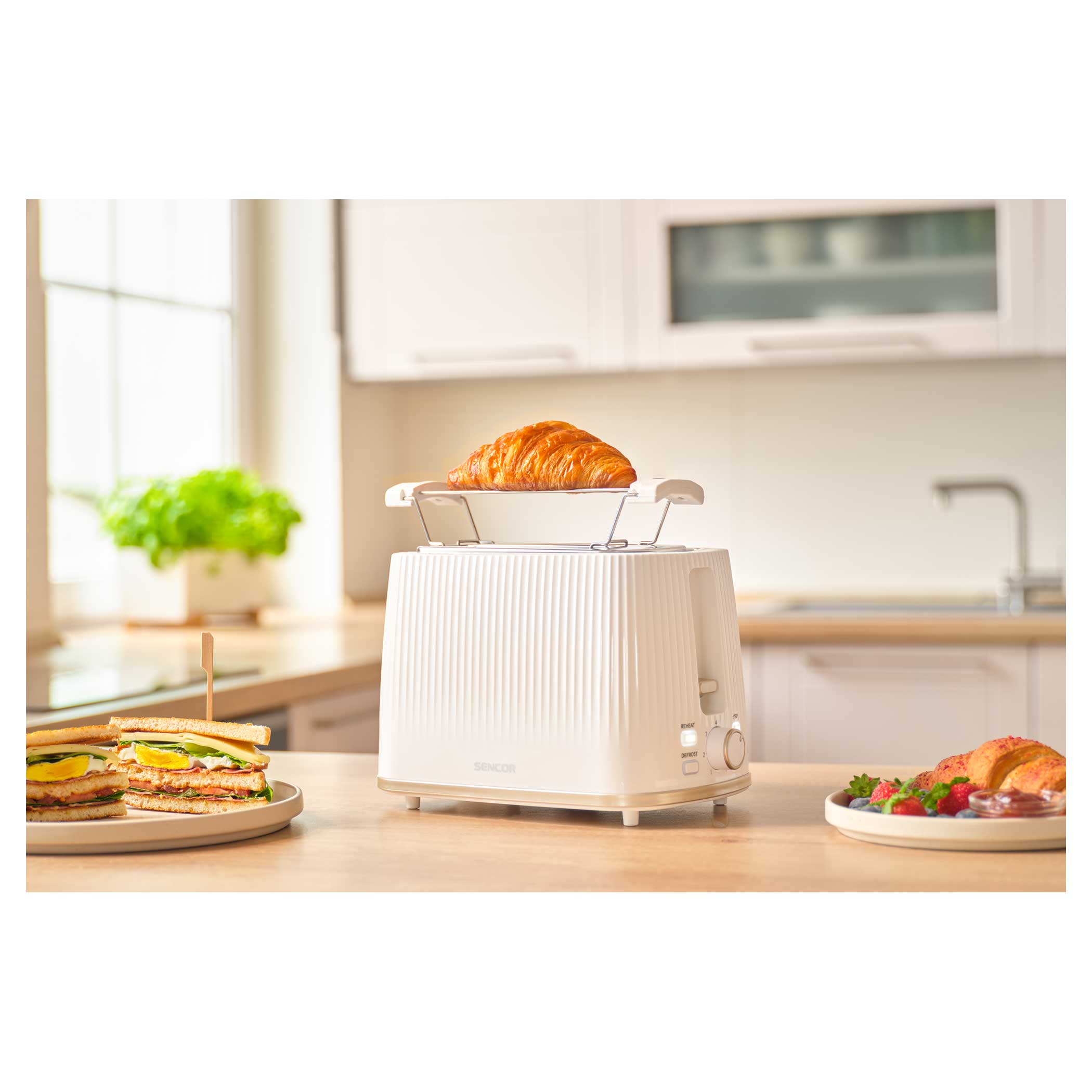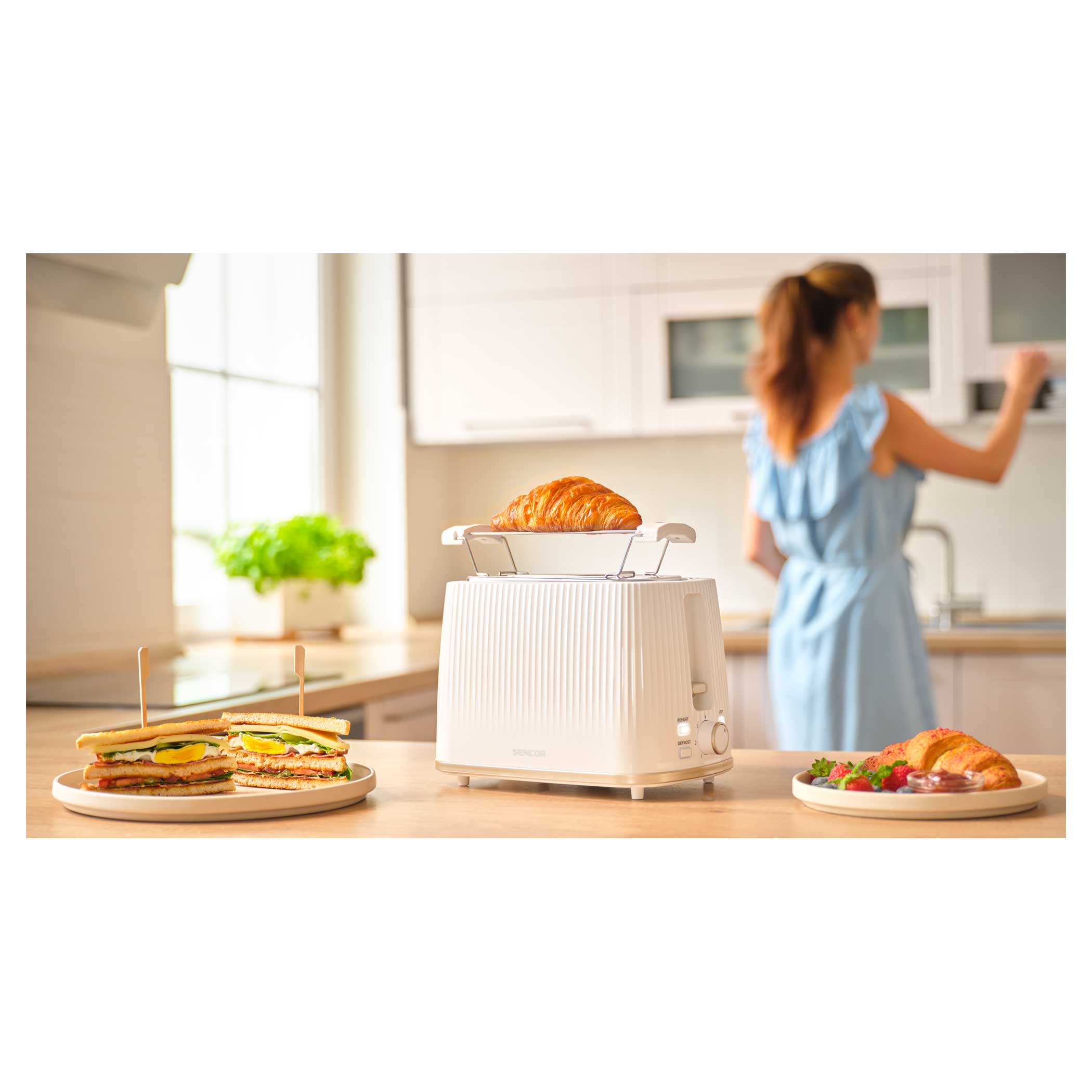 A Sencor STS 7510WH kenyérpirító praktikus funkciókkal rendelkezik, mint például a kenyér automatikus középre történő igazítása, amely lehetővé teszi a kenyér vastagságának kiválasztását. Ezenkívül képes automatikusan kiolvasztani, majd egyetlen folyamattan befejezni a fagyasztott péksütemények sütését. Praktikus a High Lift funkció, a pirítókosár úgynevezett magas emelése, amely biztosítja a még kisebb kenyérszeletek pirítását és egyben megkönnyíti a maradék részek eltávolítását.