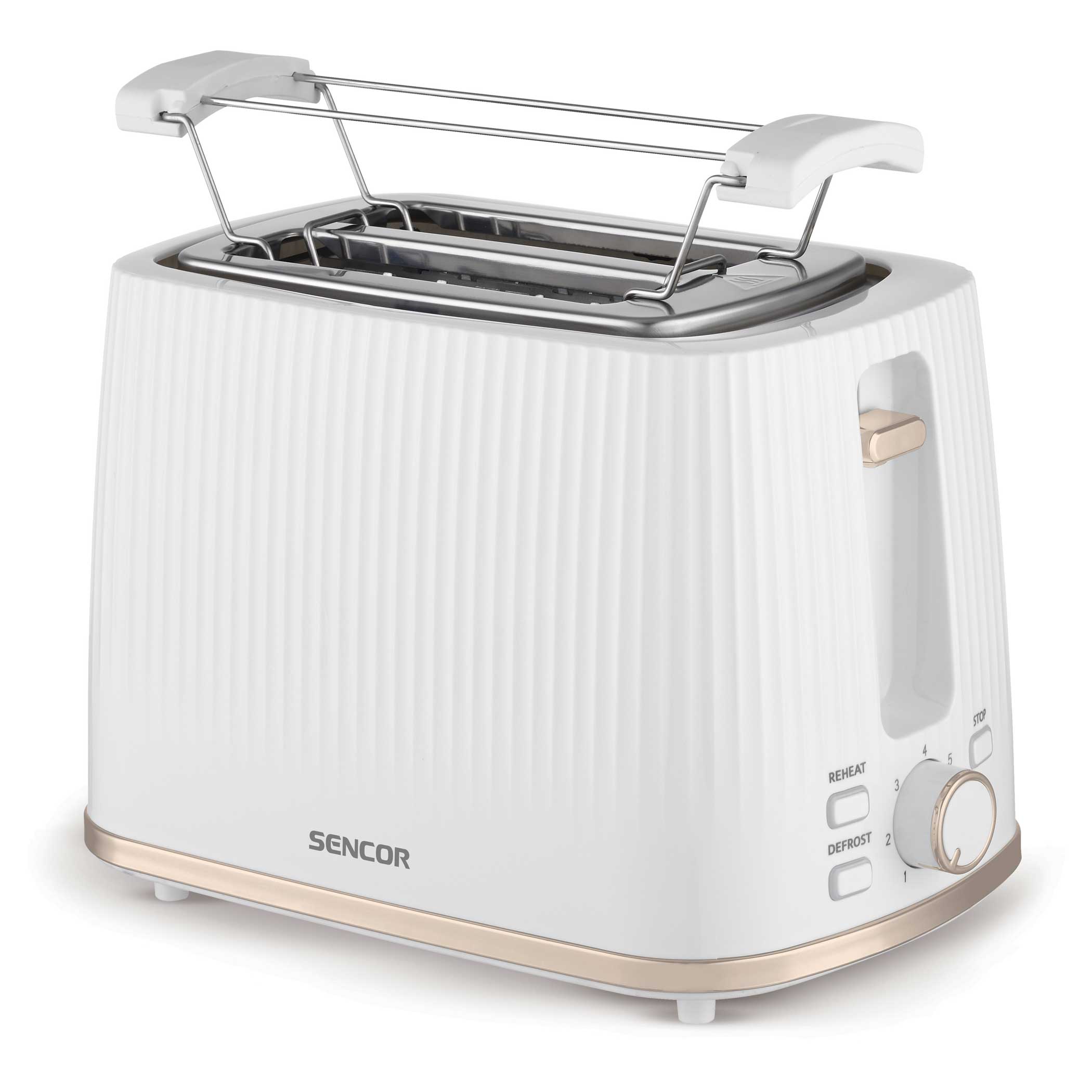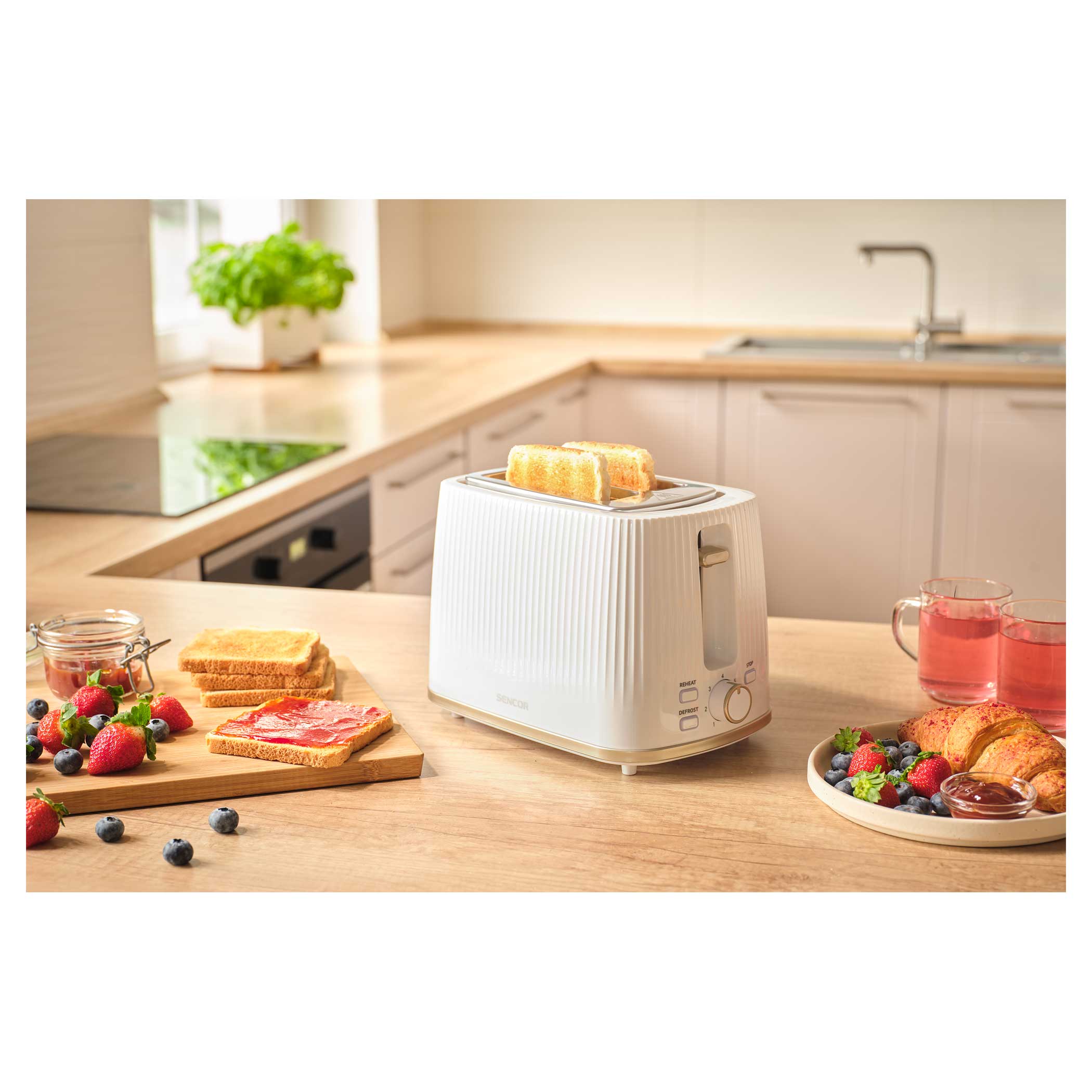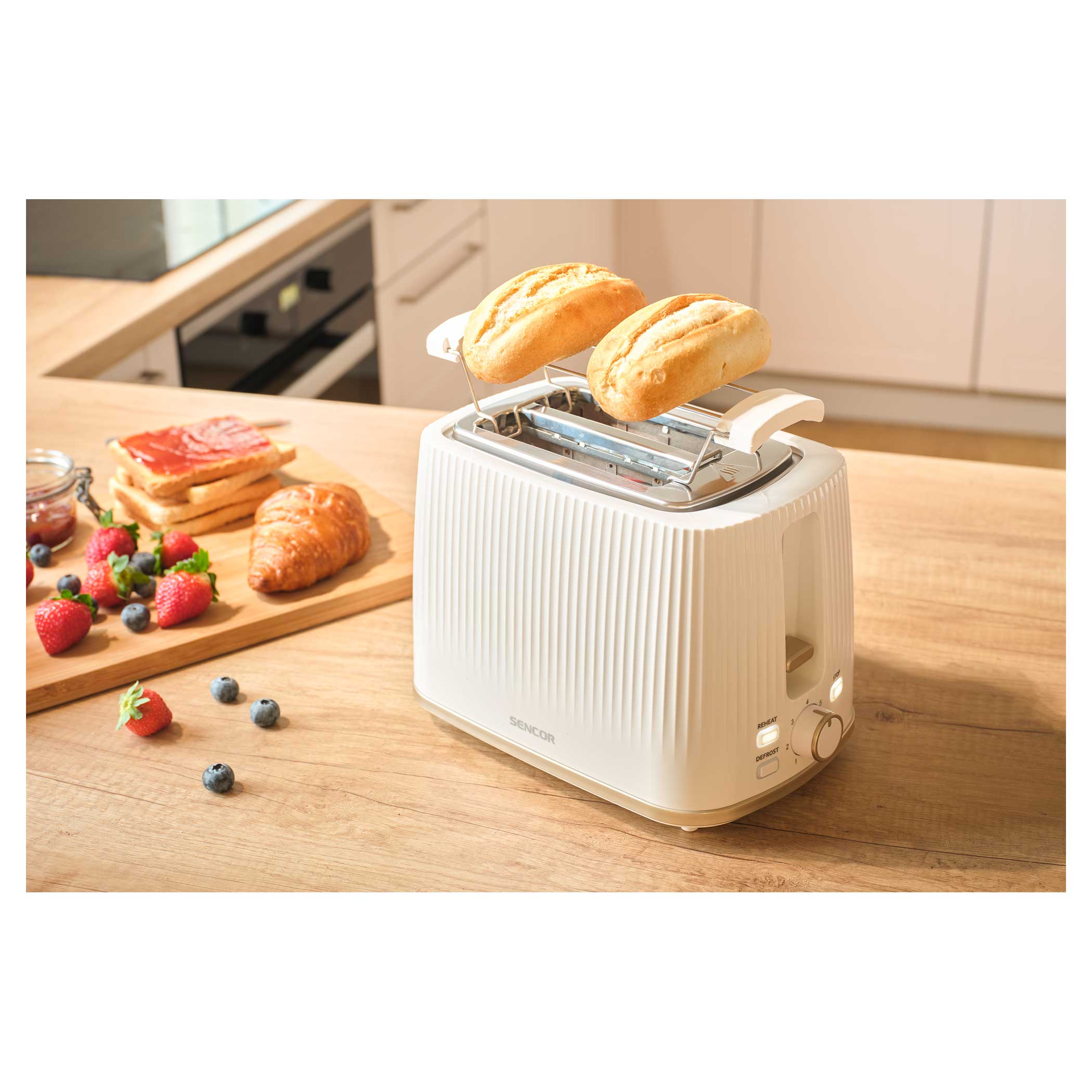 A Sencor STS 7510WH kenyérpirító praktikus funkciókkal rendelkezik, mint például a kenyér automatikus középre történő igazítása, amely lehetővé teszi a kenyér vastagságának kiválasztását. Ezenkívül képes automatikusan kiolvasztani, majd egyetlen folyamattan befejezni a fagyasztott péksütemények sütését. Praktikus a High Lift funkció, a pirítókosár úgynevezett magas emelése, amely biztosítja a még kisebb kenyérszeletek pirítását és egyben megkönnyíti a maradék részek eltávolítását.