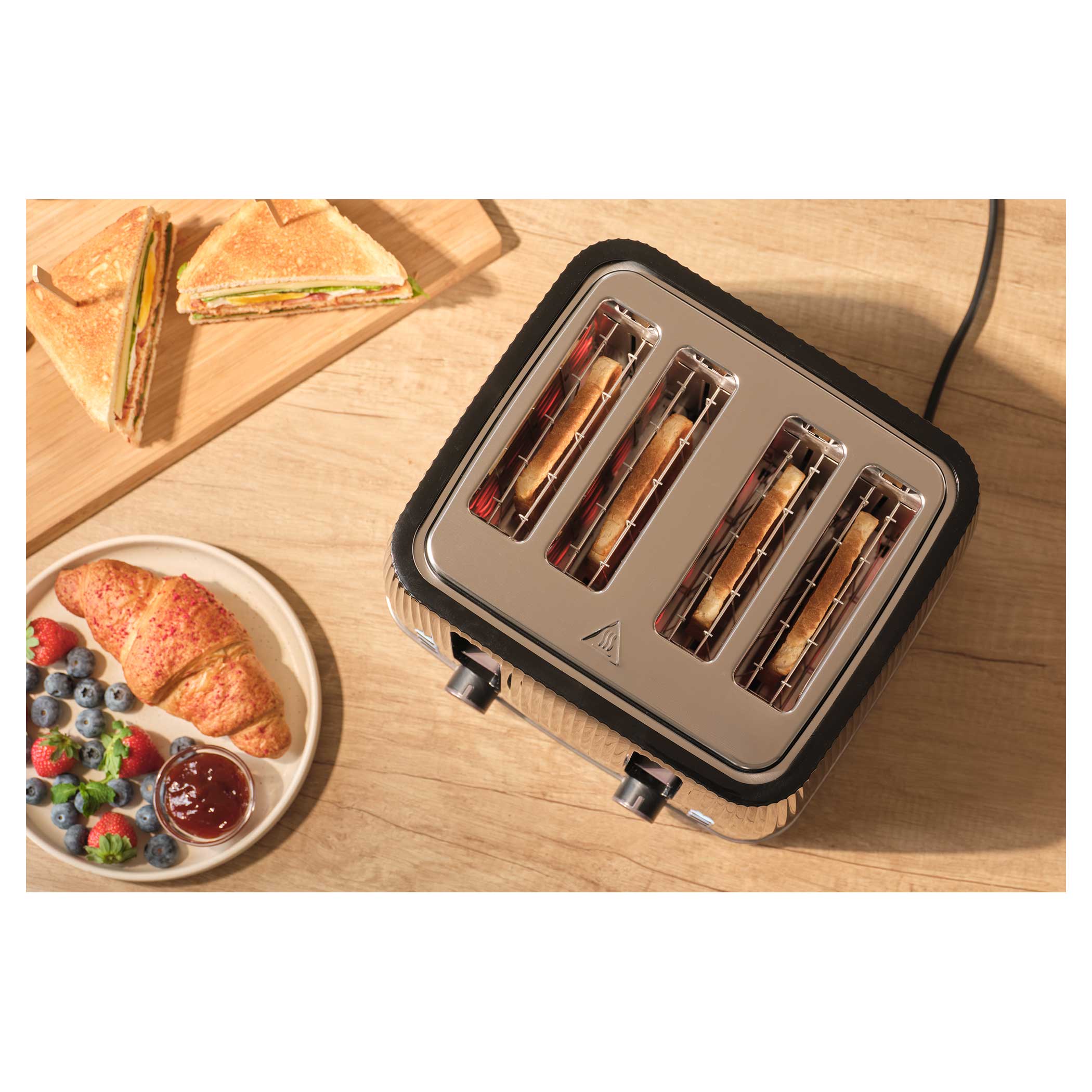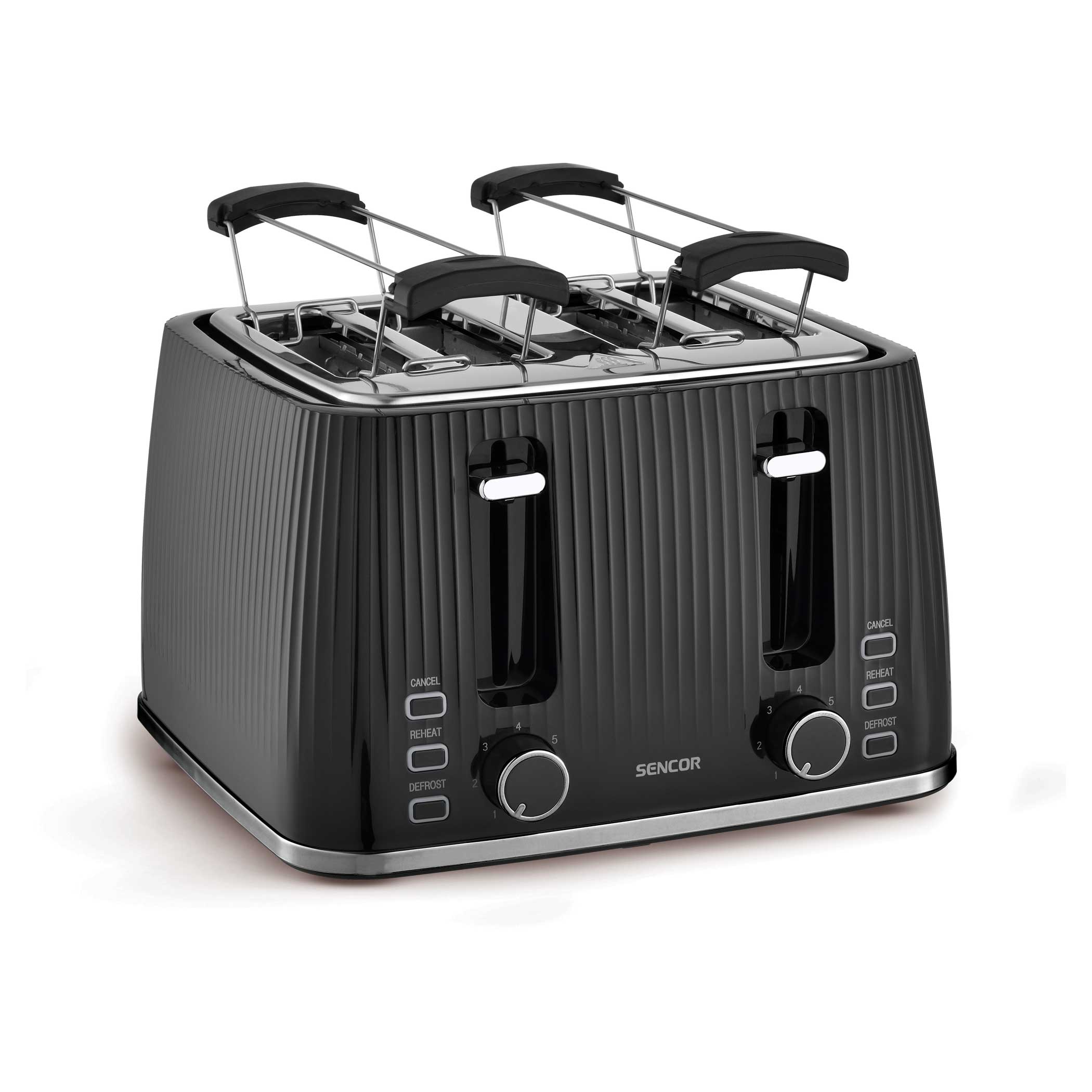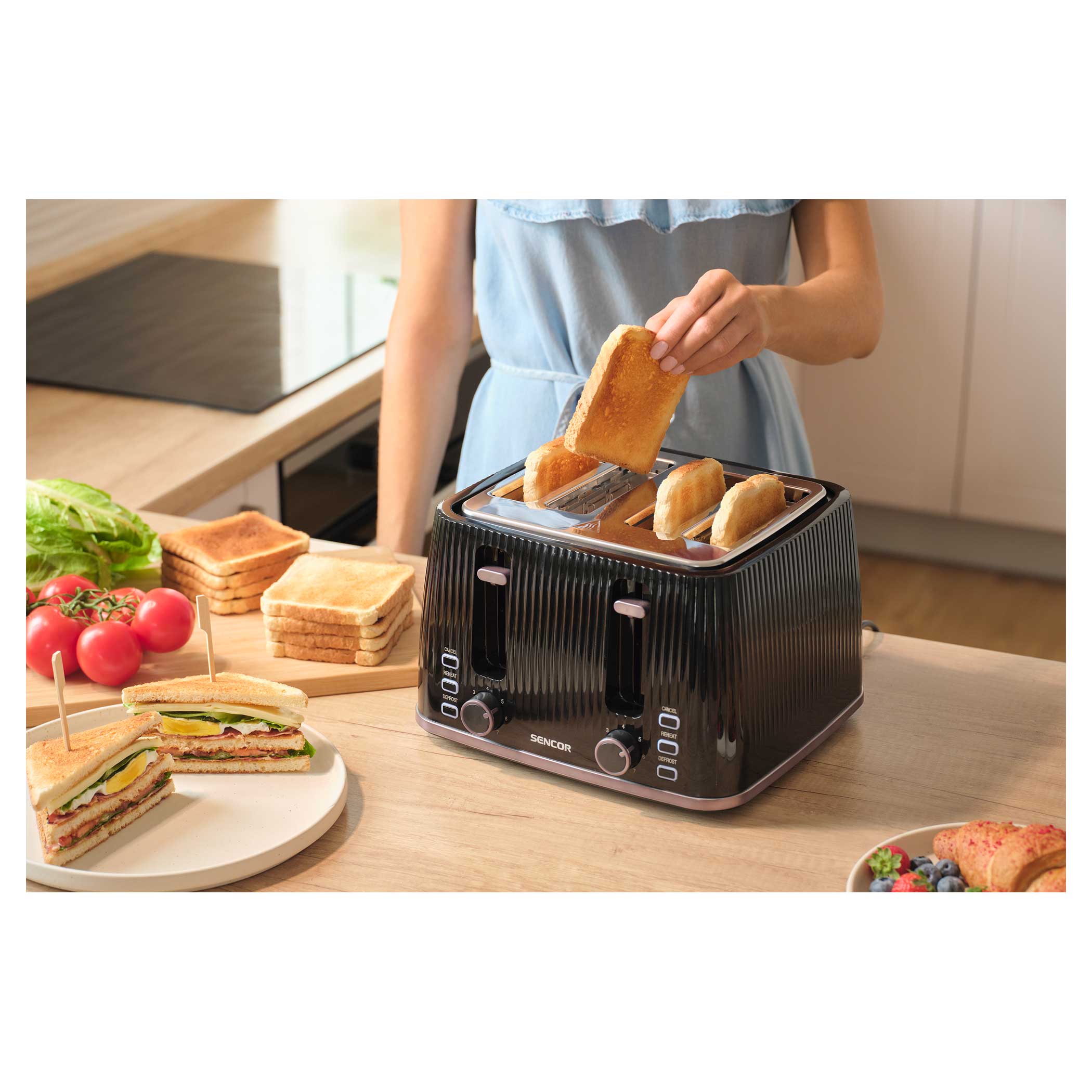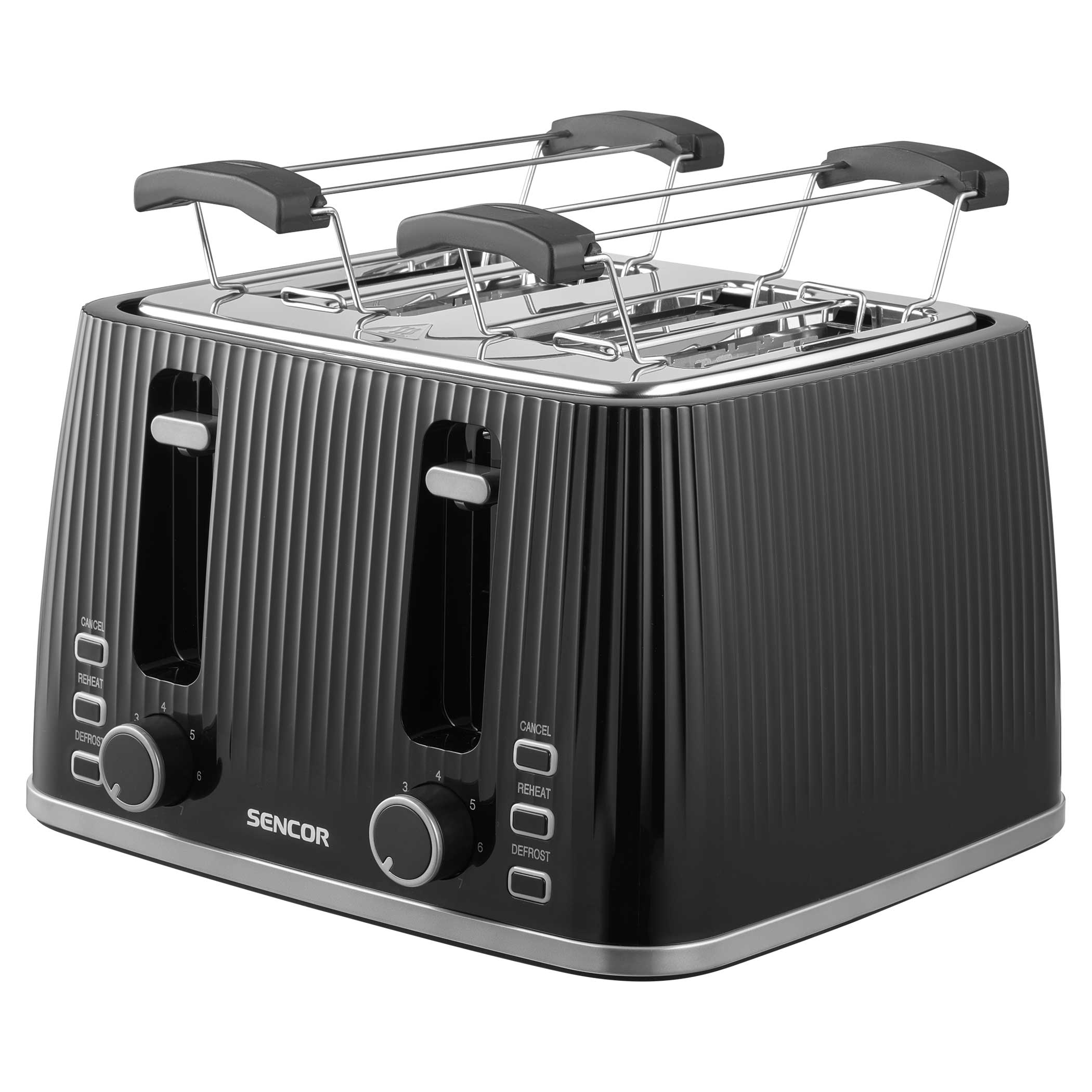 A Sencor STS 7541BK kenyérpirító segítségével a nap legfontosabb étkezéséhez járulhatsz hozzá saját ízlésednek megfelelő pirítósokkal. Egyszerre négy szelet kenyér készíthető, a pirítás intenzitását 7 fokozatban állíthatod be. Készíts friss zsemlét a péksütemény melegítő rács segítségével. Három további extra funkcióval rendelkezik, ilyen az ismételt melegítés/újra melegítés (fényjelzéssel), a melegítés azonnali megszakadása a beállított idő vége előtt és fagyasztott kenyér pirítása/kiolvasztása (fényjelzéssel).