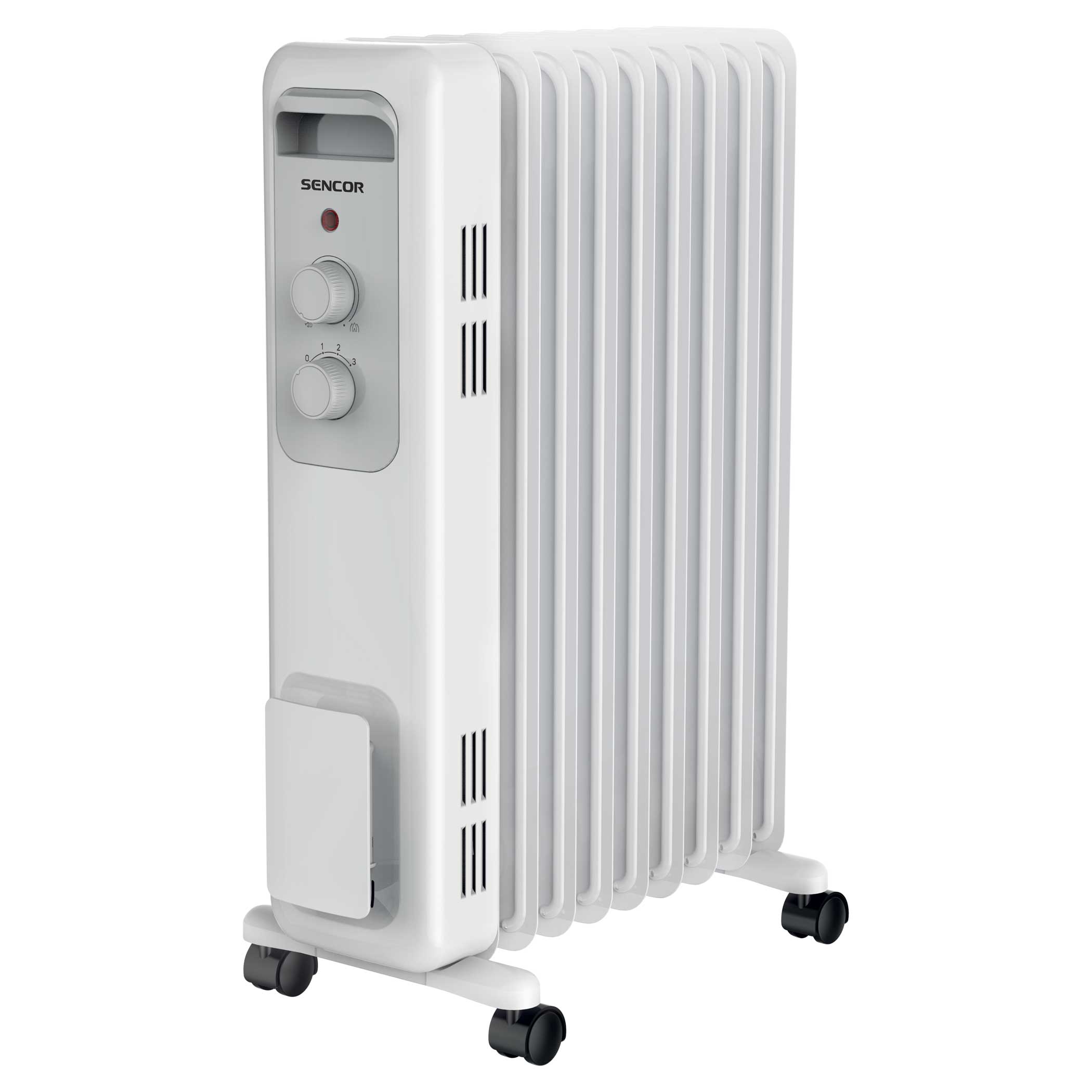 A Sencor SOH 3209WH olajradiátor ideális választás, ha gyorsan és hatékonyan szeretnéd felmelegíteni a szoba hőmérsékletét. A 9 fűtőbordával rendelkező radiátor beépített forgó termosztát szabályozóval biztosítja az általad kívánt szobahőmérséklet pontos beállítását és fenntartását. Kompakt kialakításának köszönhetően kis helyen is elfér, és a 4 felszerelt görgő lehetővé teszi, hogy könnyedén mozgathasd a készüléket bárhová.