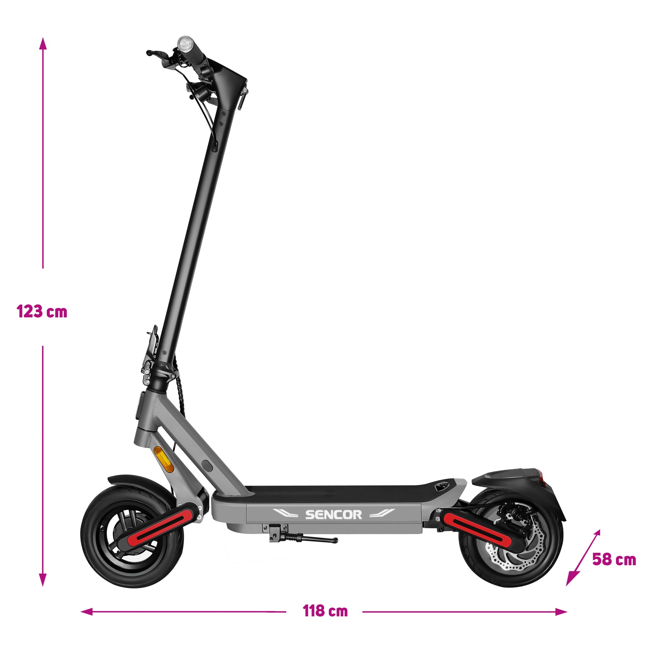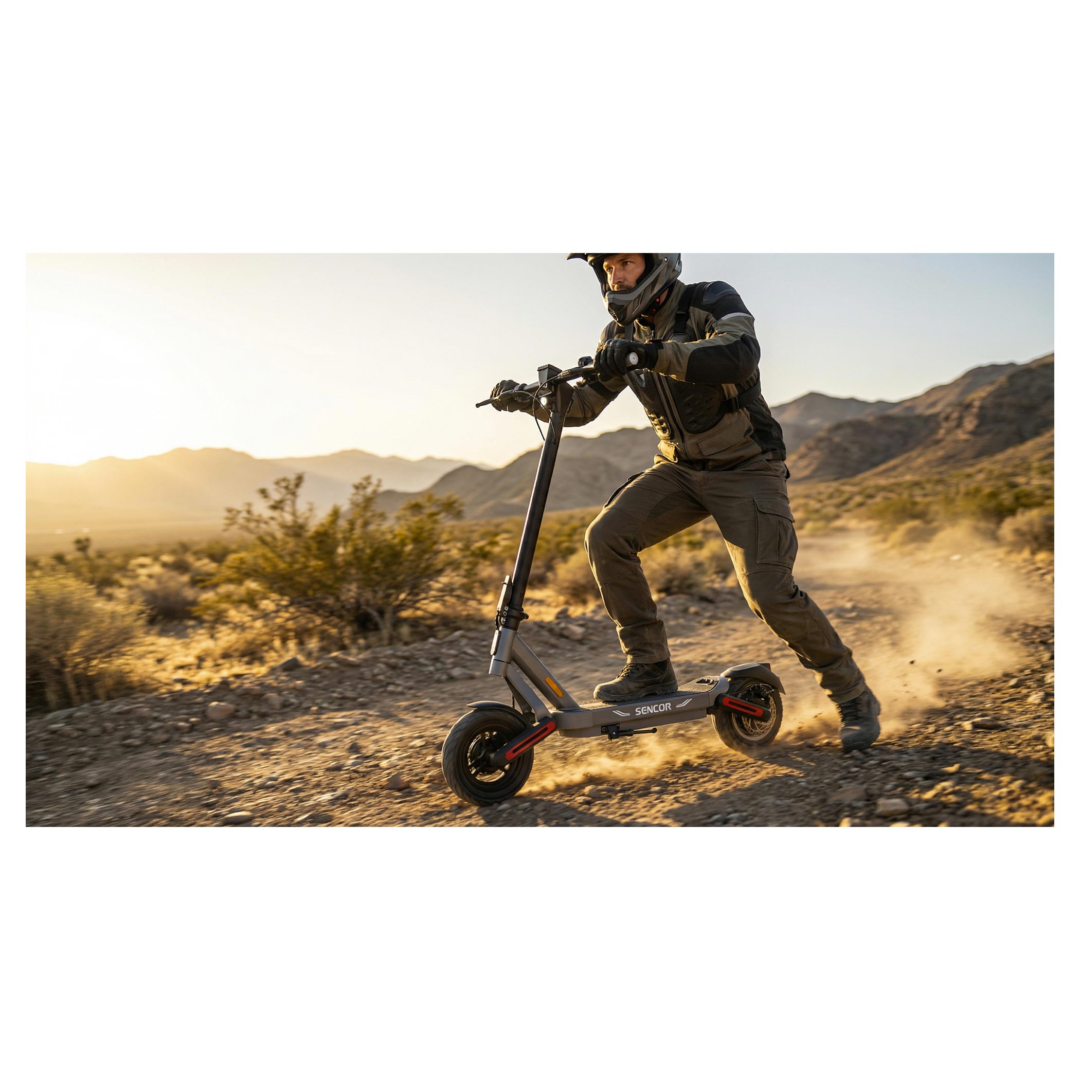 A Sencor SCOOTER S71 DARK elektromos roller modern kialakítással és nagy teljesítményű motorral biztosít kényelmes, gyors és biztonságos közlekedést a városban. Az elegáns, robusztus alumínium váz, a fejlett felfüggesztési rendszer és az intelligens funkciók kombinációja prémium vezetési élményt nyújt mindennapi használat során.