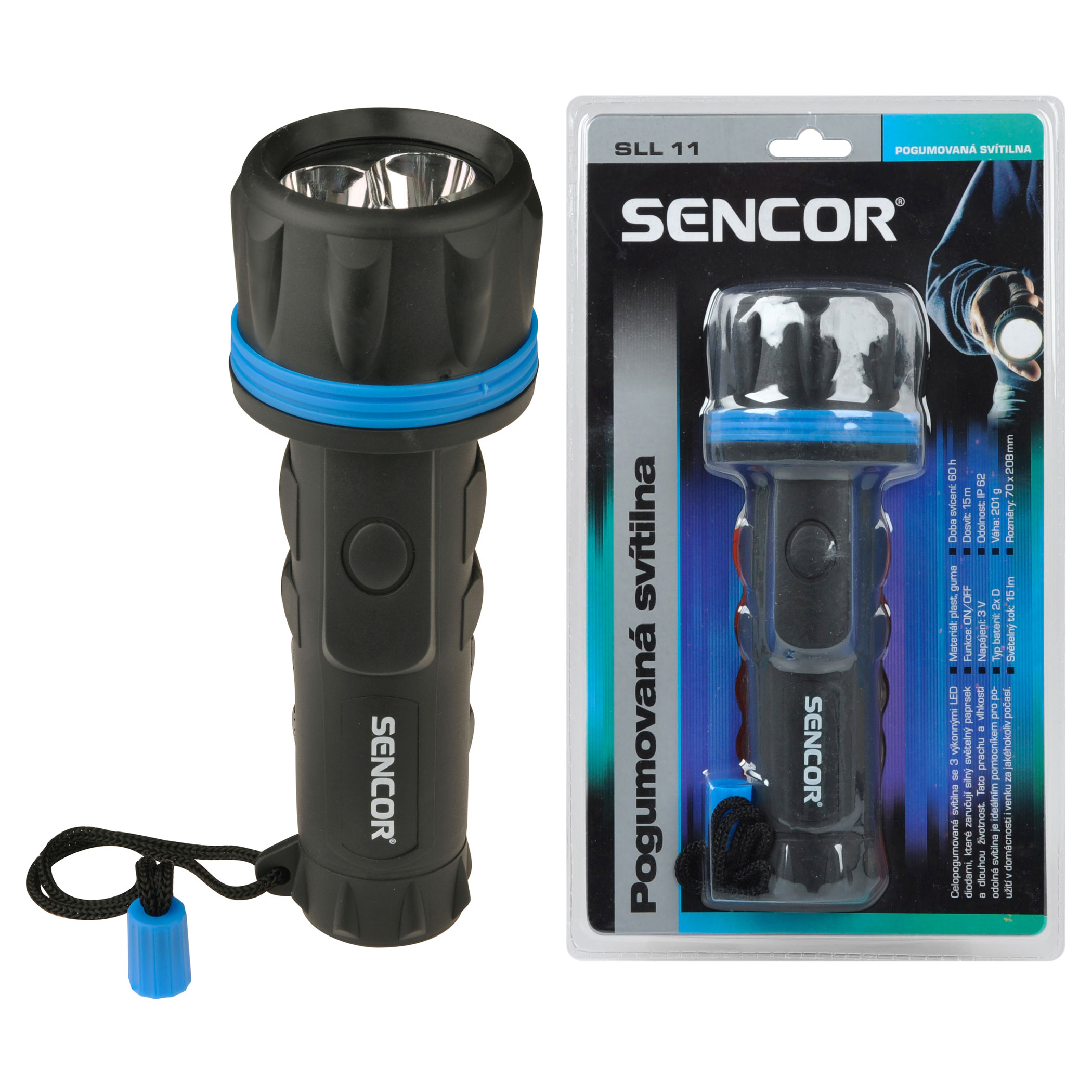 A Sencor SLL 11 minőségi víz- és porálló, gumírozott elemlámpa. 3 nagy teljesítményű LED diódával, mely erős fényt és hosszú élettartamot biztosít. Az elemlámpa ideális otthoni, illetve mindenféle időjárási körülmények között kültéri használatra.