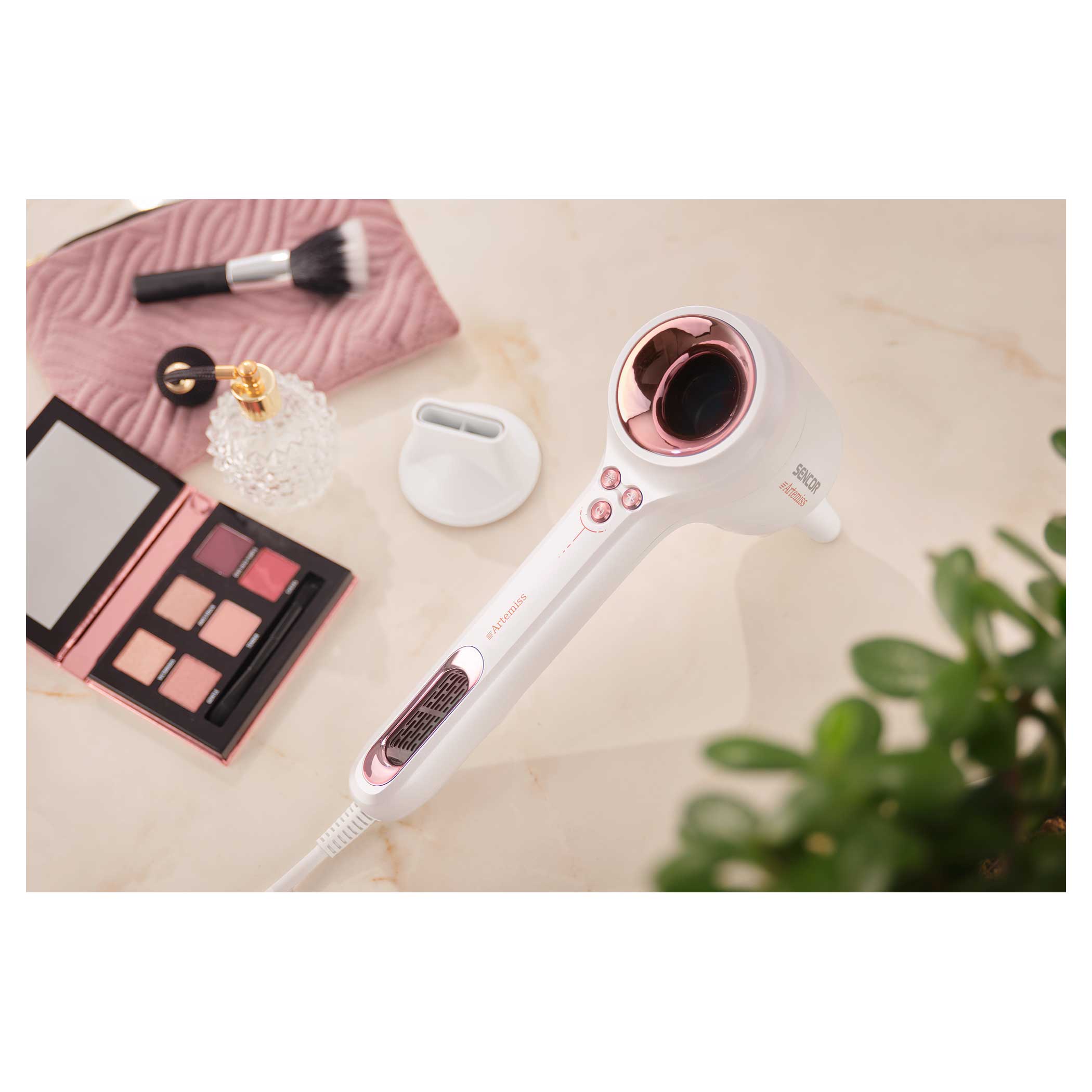 Az erős ionizáció rendkívül puha, táplált és fényes hajat biztosít. A csomag két mágneses formázó feltétet tartalmaz, amelyek könnyen rögzíthetők és cserélhetők formázás közben. Az egyszerű karbantartás érdekében eltávolítható szűrő található benne a tisztításhoz.