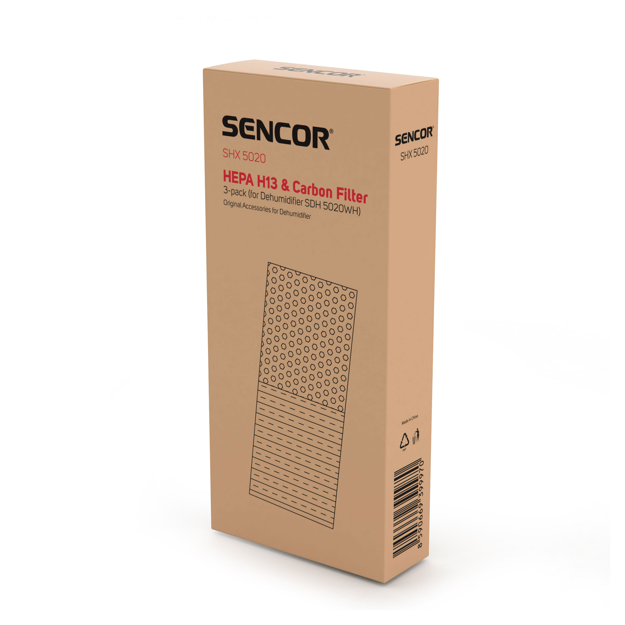 - A csomag 3 darab SHX 5020 HEPA H13 aktív szénszűrőt tartalmaz a Sencor SDH 5020WH PumpIt 50l Wi-Fi mobil párátlanítóhoz.