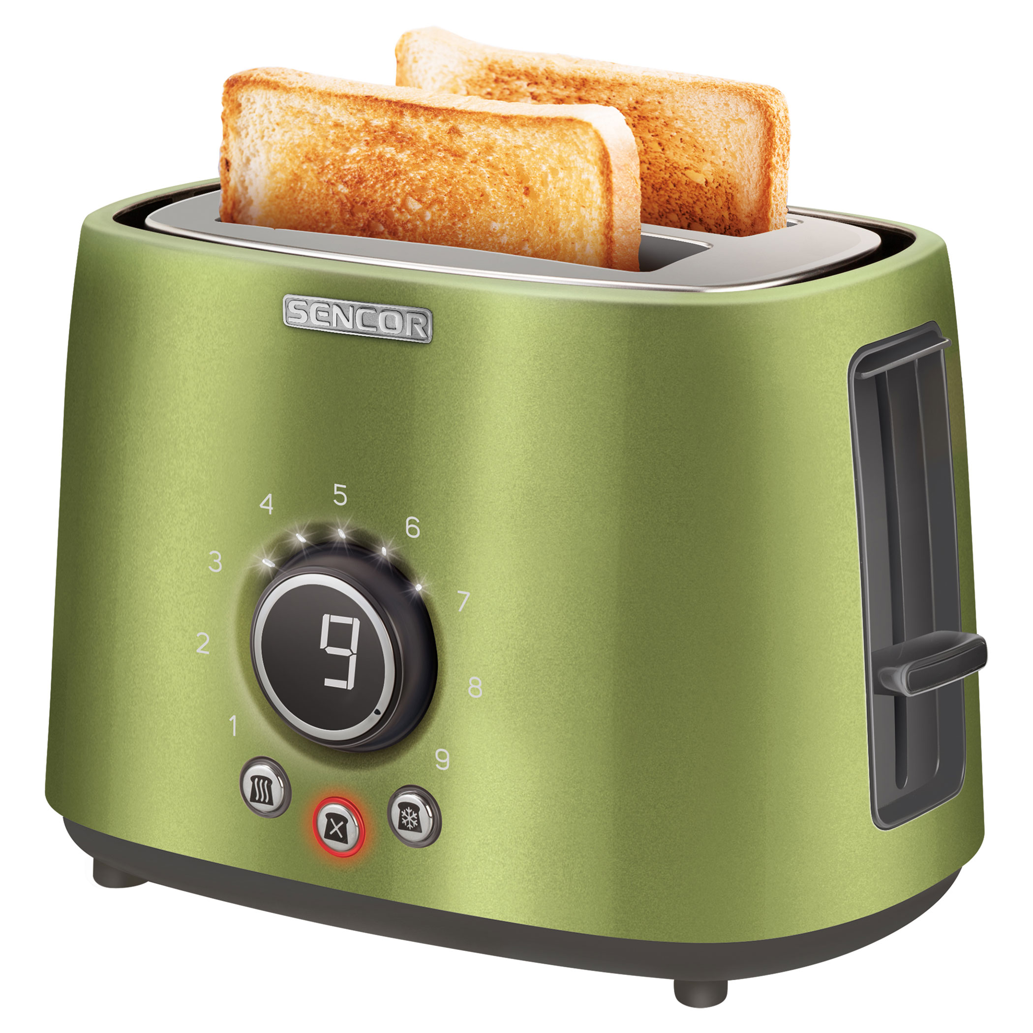 A Sencor STS 6050GG kenyérpirító praktikus funkciókkal rendelkezik, mint például a kenyér automatikus középre történő igazítása, amely lehetővé teszi a kenyér vastagságának kiválasztását. Ezenkívül képes automatikusan kiolvasztani, majd egyetlen folyamattal befejezni a fagyasztott péksütemények sütését. Praktikus a High Lift funkció, a pirítókosár úgynevezett magas emelése, amely biztosítja a még kisebb kenyérszeletek pirítását és egyben megkönnyíti a maradék részek eltávolítását.