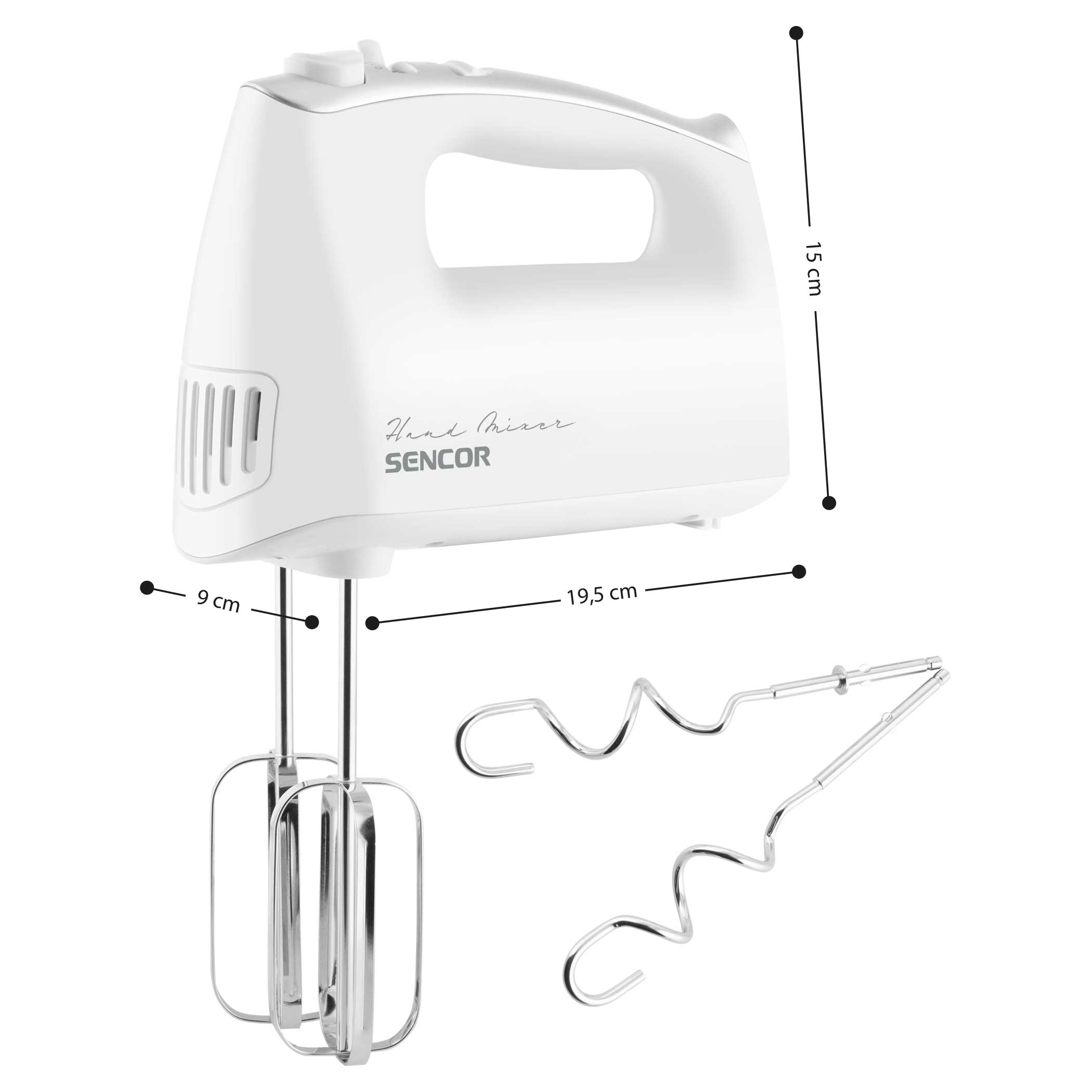 A Sencor SHM 5215 kézi mixer 5 fokozattal és turbó gombbal és 500 W teljesítménnyel lett ellátva. Könnyen, egyszerűen dolgozhatod össze a hozzávaló alapanyagokat. Használat közben csendes, de mégis maximális teljesítményt nyújt és az ergonomikus markolatnak köszönhetően garantálja a biztos fogást. Finomabbnál finomabb, könnyű tésztájú süteményeket készíthetsz a fém habverő szárak segítségével, és a fém dagasztó karokkal ezzel ellentétben ellenállhatatlan kenyereket és hagyományos tésztaféléket keverhetsz.