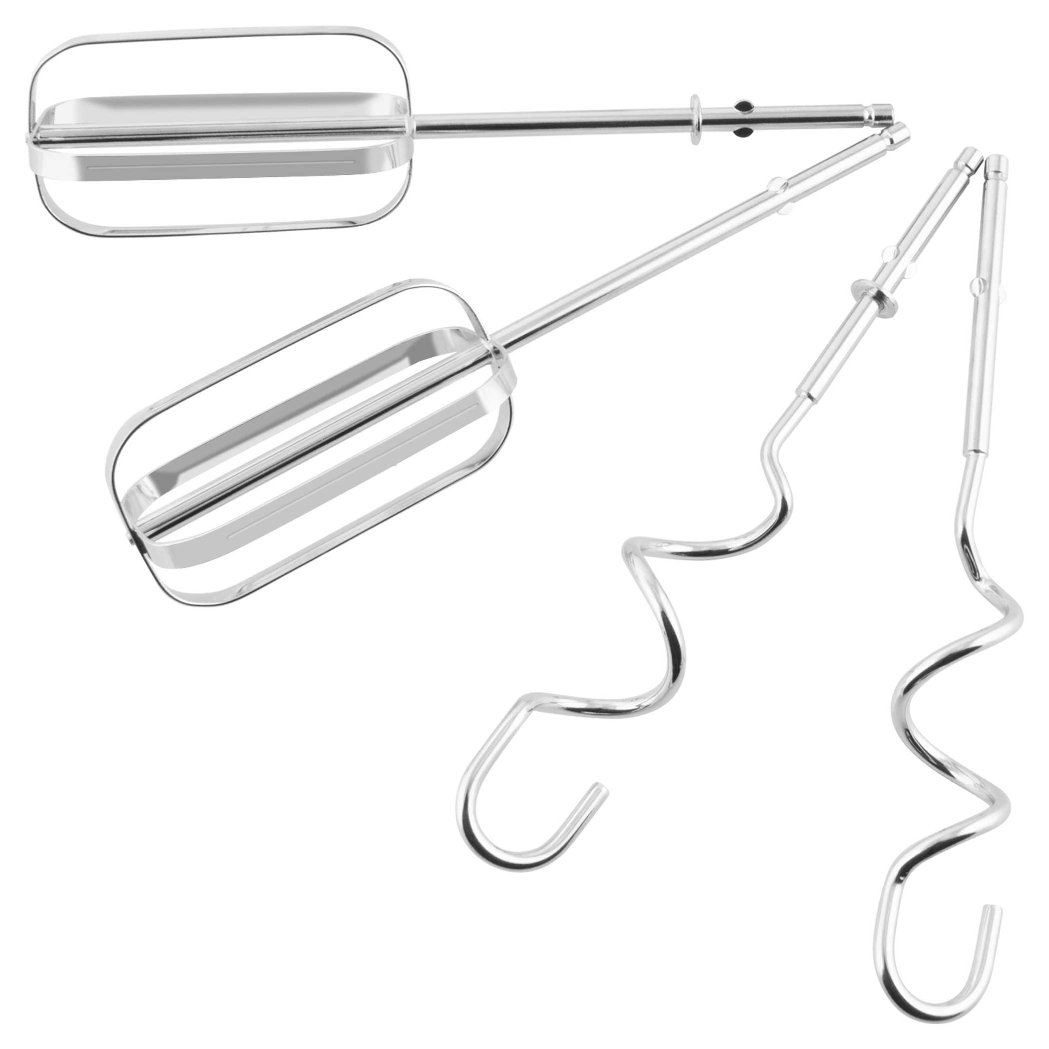 A csomag tartalmát képezi a rozsdamentes acélból készült keverőszár és dagasztókar. Karbantartásuk egyszerű, mosogatógépben moshatók. A keverőszárak cseréjét egy gomb megnyomásával egyszerűen végezheted el.