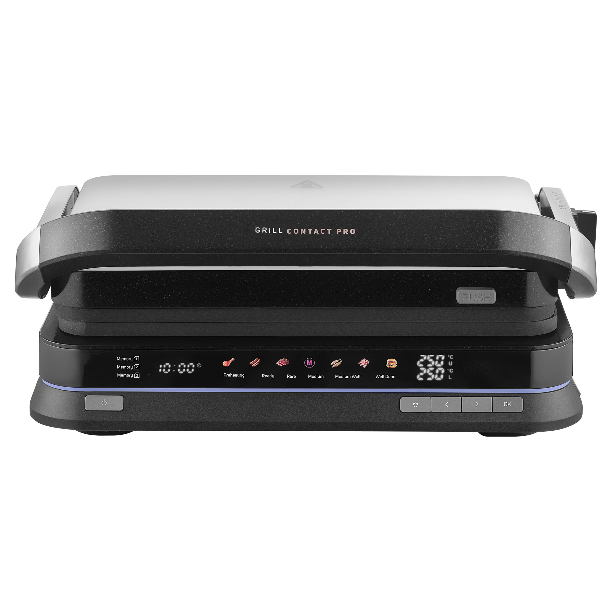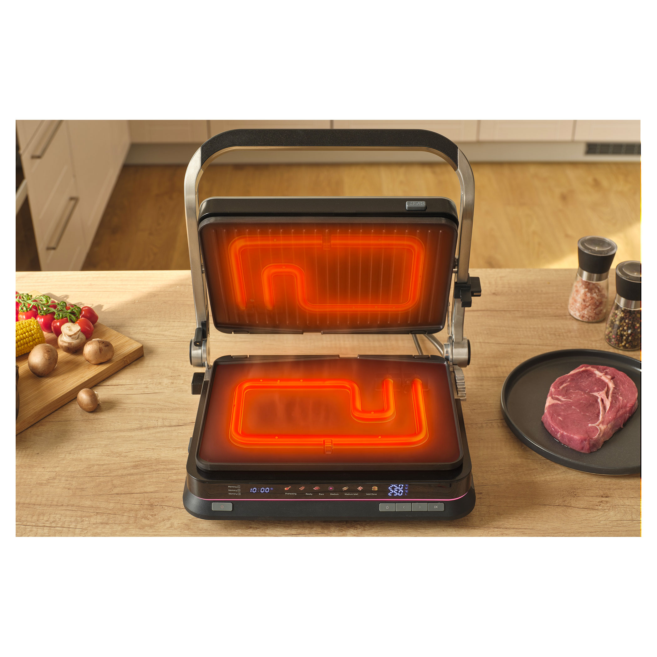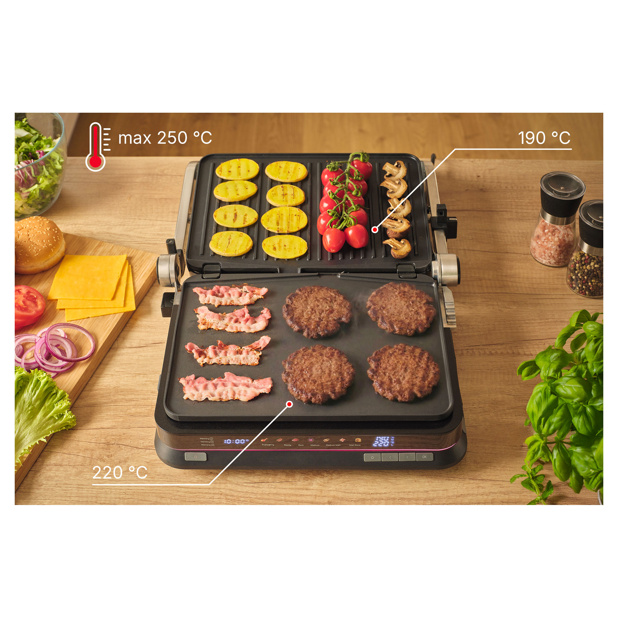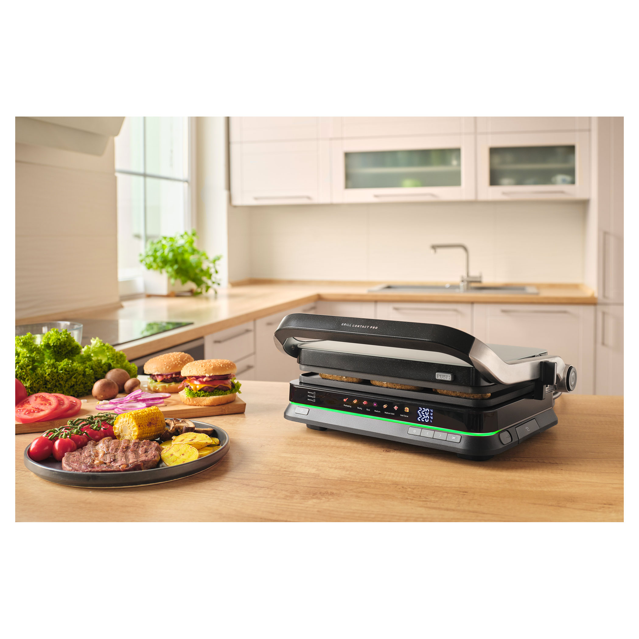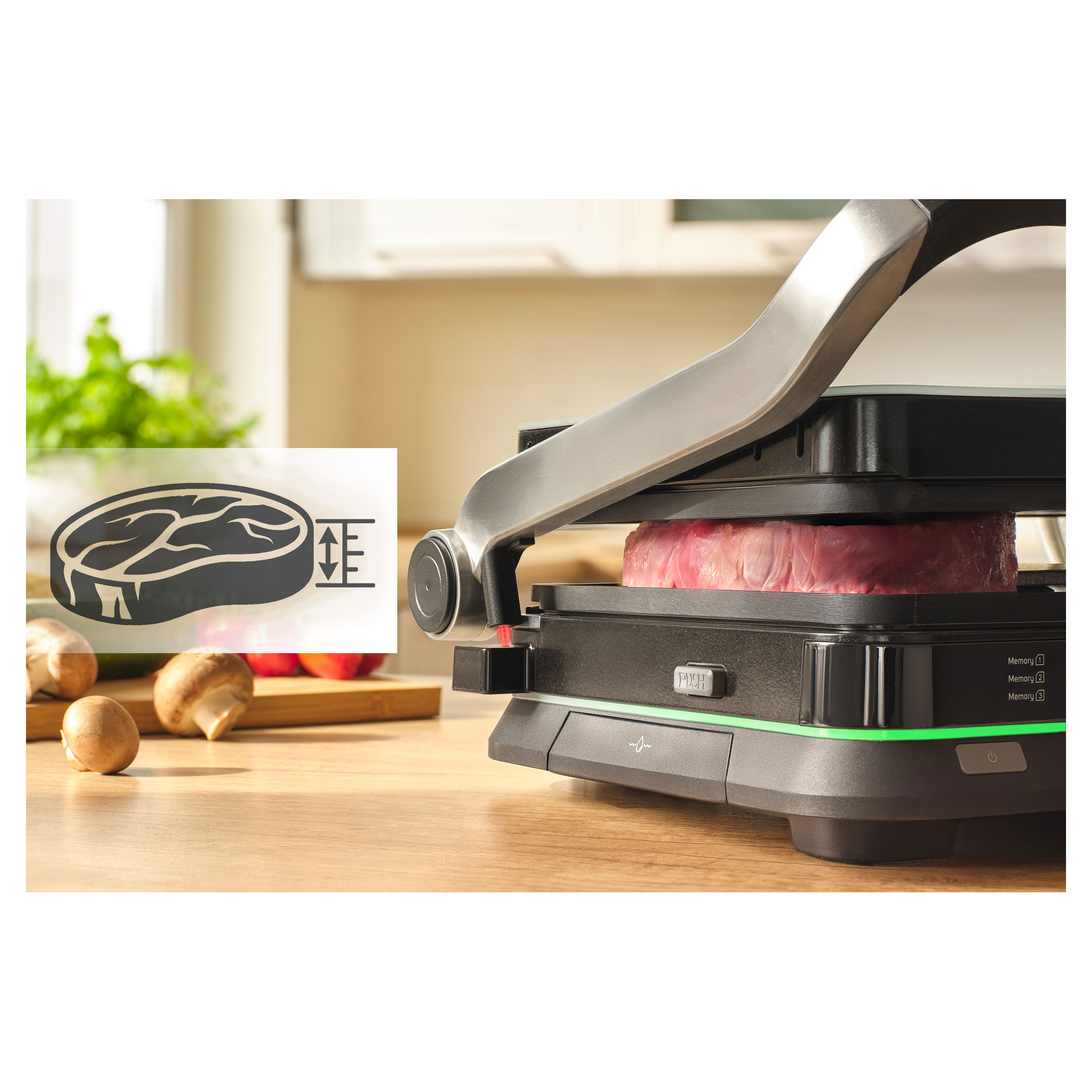 A Sencor SBG 7030BK kontaktgrill lehetővé teszi szaftos húsok, hamburgerek, halak, grillezett zöldségek és más ételek egyszerű elkészítését. Az intelligens szenzor felismeri az étel vastagságát és automatikusan beállítja a grillezési időt.