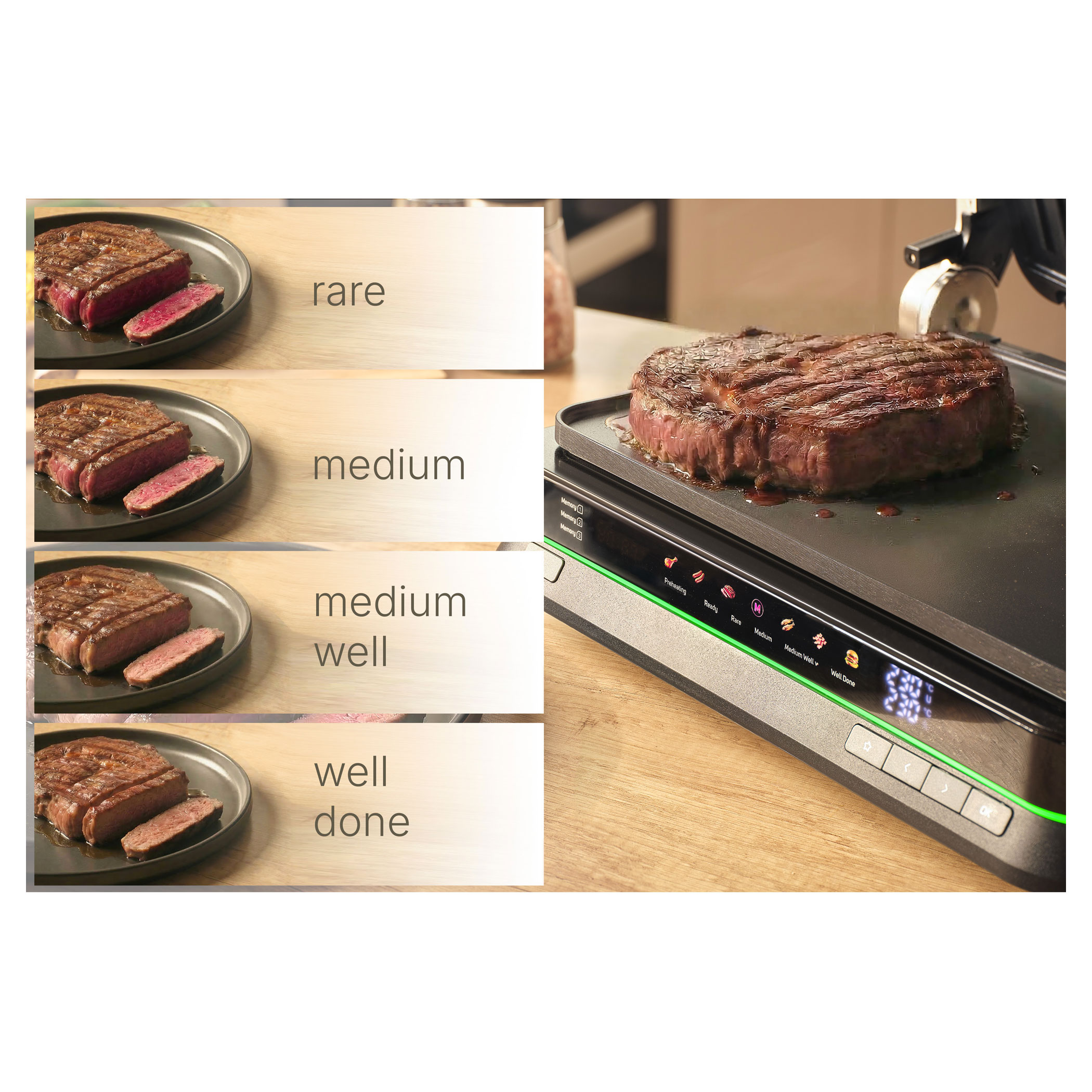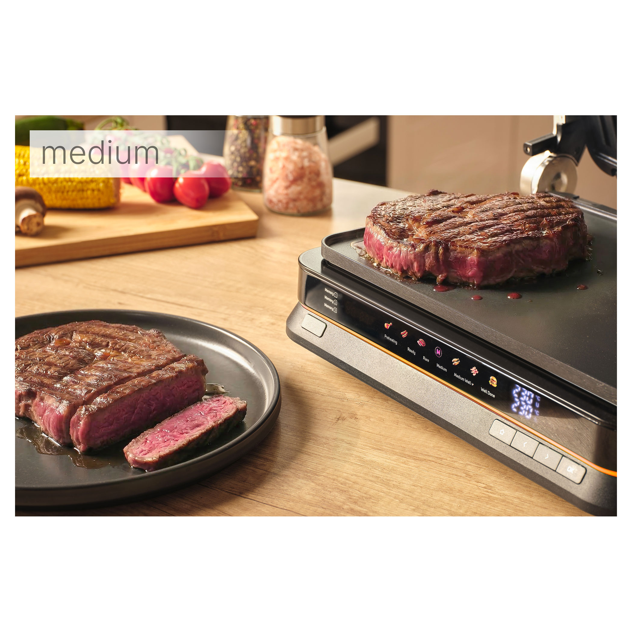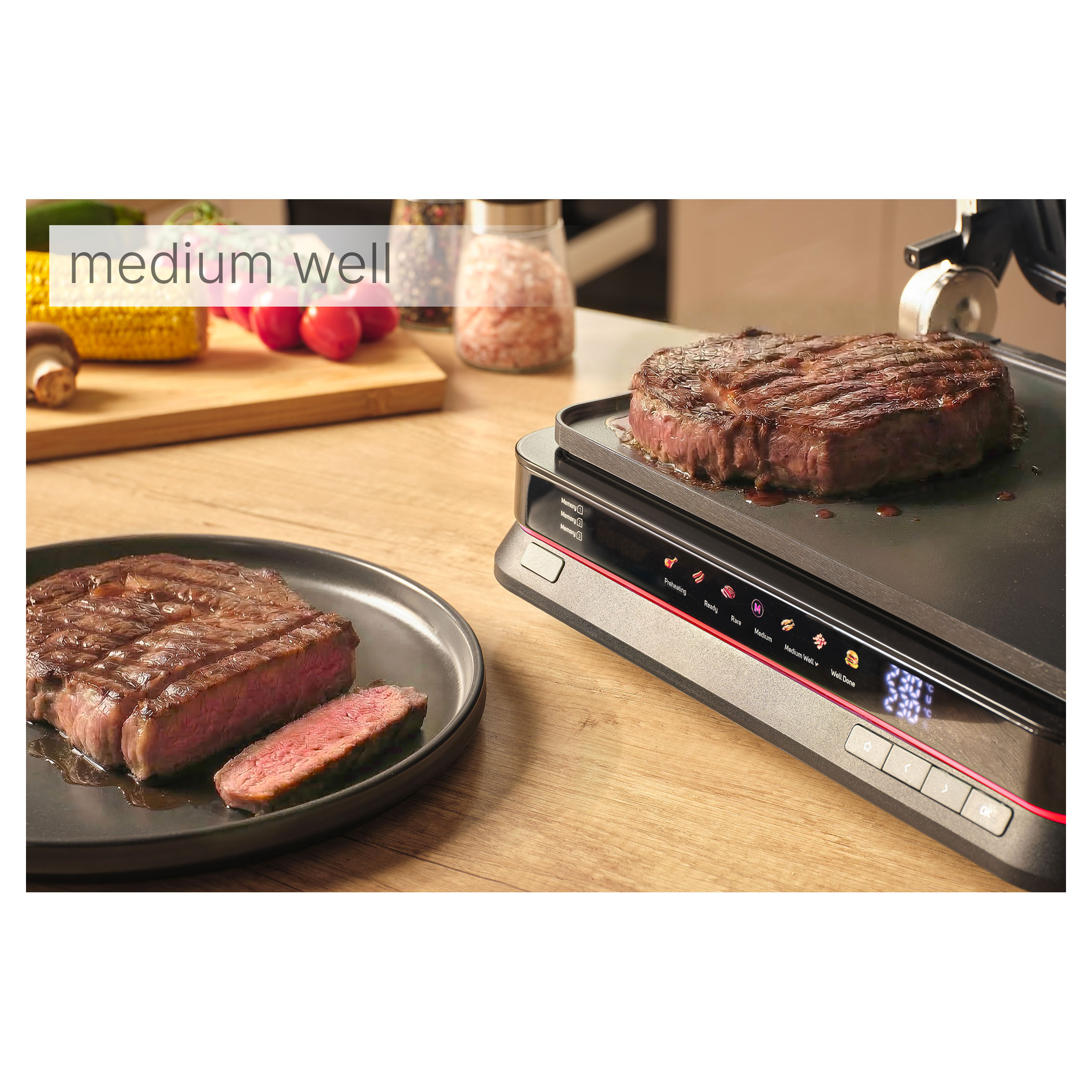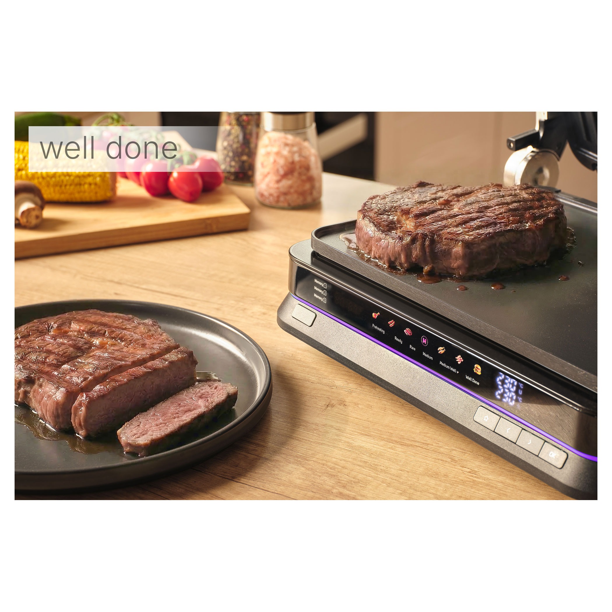 A Sencor SBG 7030BK kontaktgrill lehetővé teszi szaftos húsok, hamburgerek, halak, grillezett zöldségek és más ételek egyszerű elkészítését. Az intelligens szenzor felismeri az étel vastagságát és automatikusan beállítja a grillezési időt.