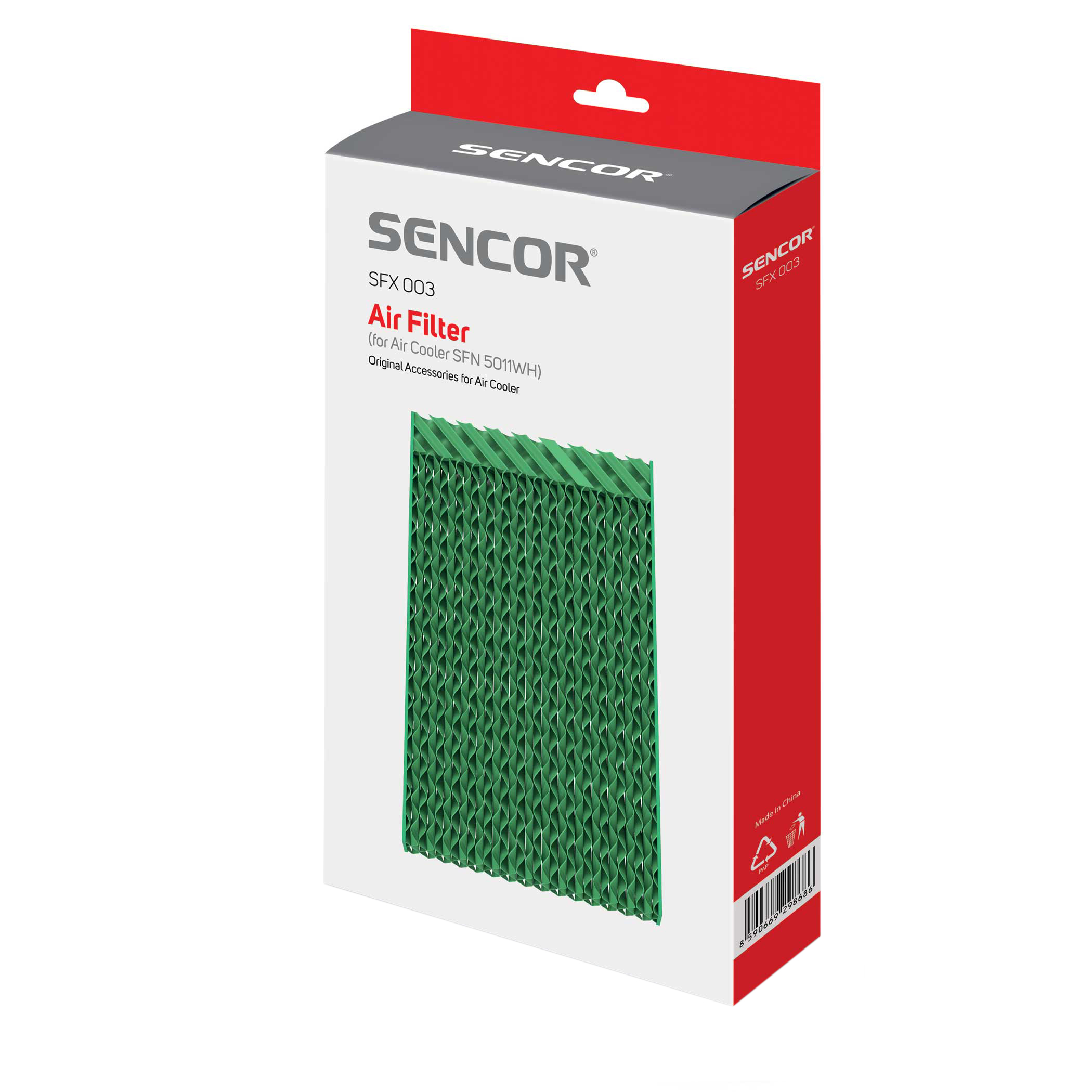 A SENCOR SFN 5011WH készülékhez készült SFX 003 légszűrő / hűtőbetét elengedhetetlen tartozéka a készülék hatékony működésének. A szűrő szerepe, hogy a tartályból felszívott vizet hűtse, párásítja és tisztítja a levegőt, miközben biztosítja a levegő frissességét. A megfelelő ápolás mellett a szűrő élettartama akár 3 év is lehet. Fontos, hogy a készülék biztonságos és hatékony működése érdekében rendszeresen ellenőrizd a szűrő állapotát, és szükség esetén cseréld ki, hogy elkerüld a nem kívánt problémákat.