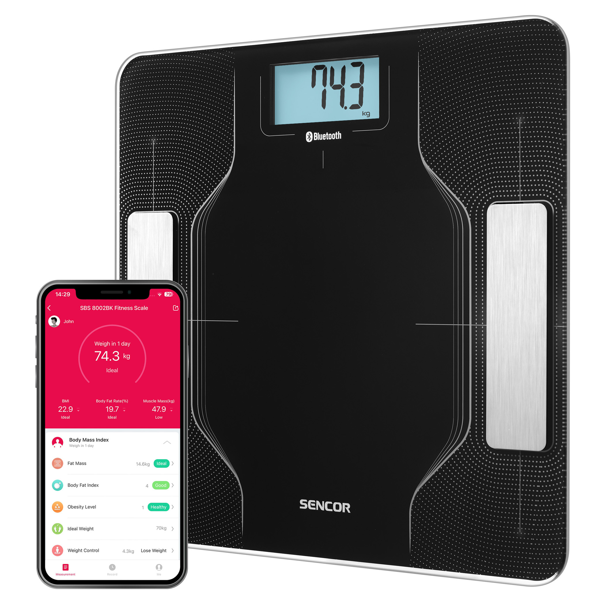 A Sencor SBS 8002BK letisztult, elegáns stílusú minden fürdőszobába könnyen beilleszthető kiegészítő. A Bluetooth adatkapcsolatnak köszönhetően összeköthető okostelefonoddal, így haszálhatod a Sencor Home applikációt, de egyszerűen csatlakoztathatod a Google Fit és az Apple Health alkalmazásokhoz is egyaránt, így különböző statisztikát készíthetsz, elemezhetsz a kívánt eredmény elérése érdekében. Képes a mért tömeg, a testvíztartalom, a zsírszázalék, valamint a csontsűrűség kijelzésére, mindemellett meghatározza a testtömeg index értékét is. Biztonsági edzett üveg felülettel lett ellátva, a maximális terhelhetősége pedig 180 kg a mérési pontosság pedig 100 g. Az inverz kijelző automatikusan ki- és bekapcsol, így használata rendkívül egyszerű.