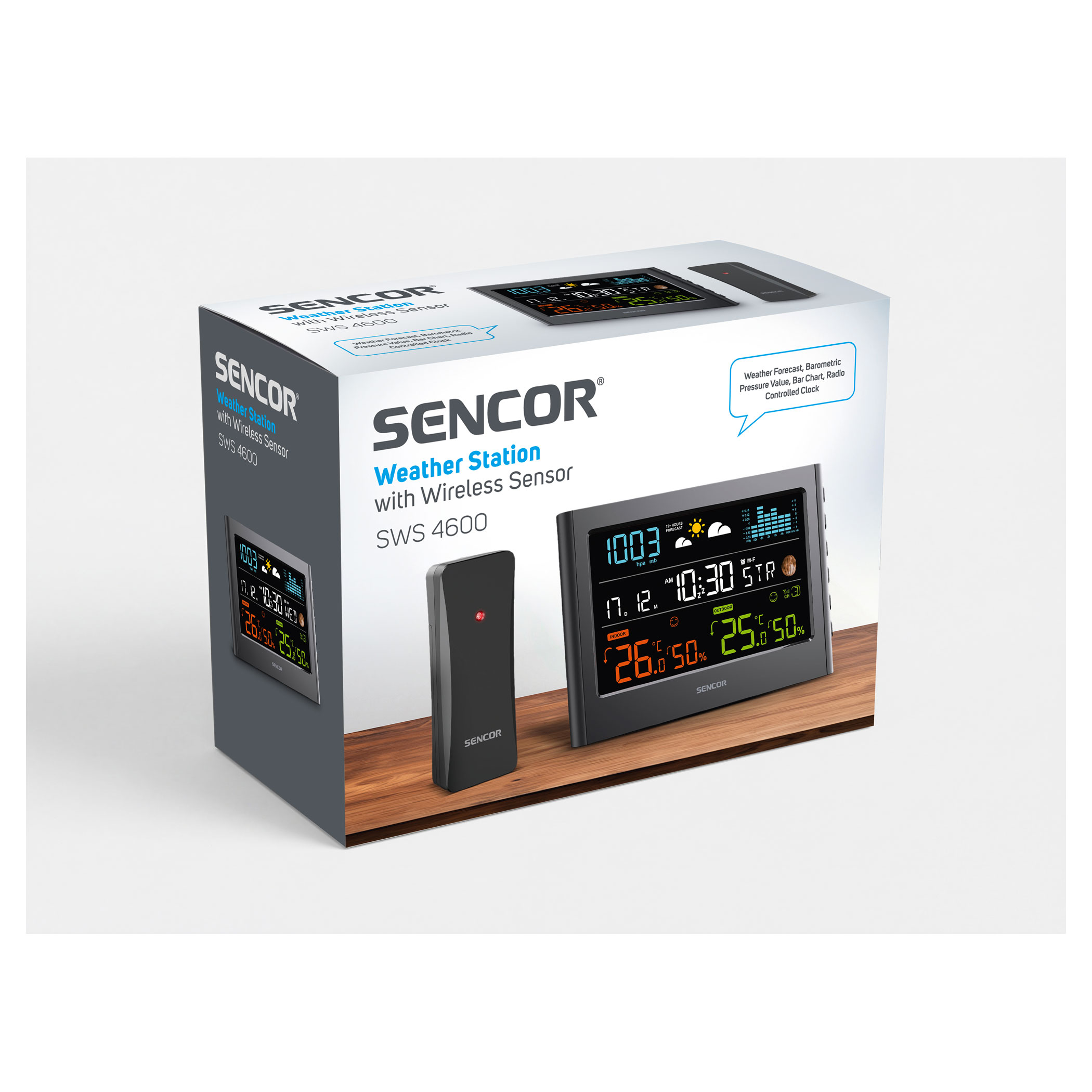 Megbízható, áttekinthető és kiválóan felszerelt. A Sencor SWS 4600 vezeték nélküli érzékelővel ellátott meteorológiai állomás időjárás-előrejelzést kínál, valamint megjeleníti a hőmérsékletet és a páratartalmat. Ideális választás kiváló ár-érték aránnyal.