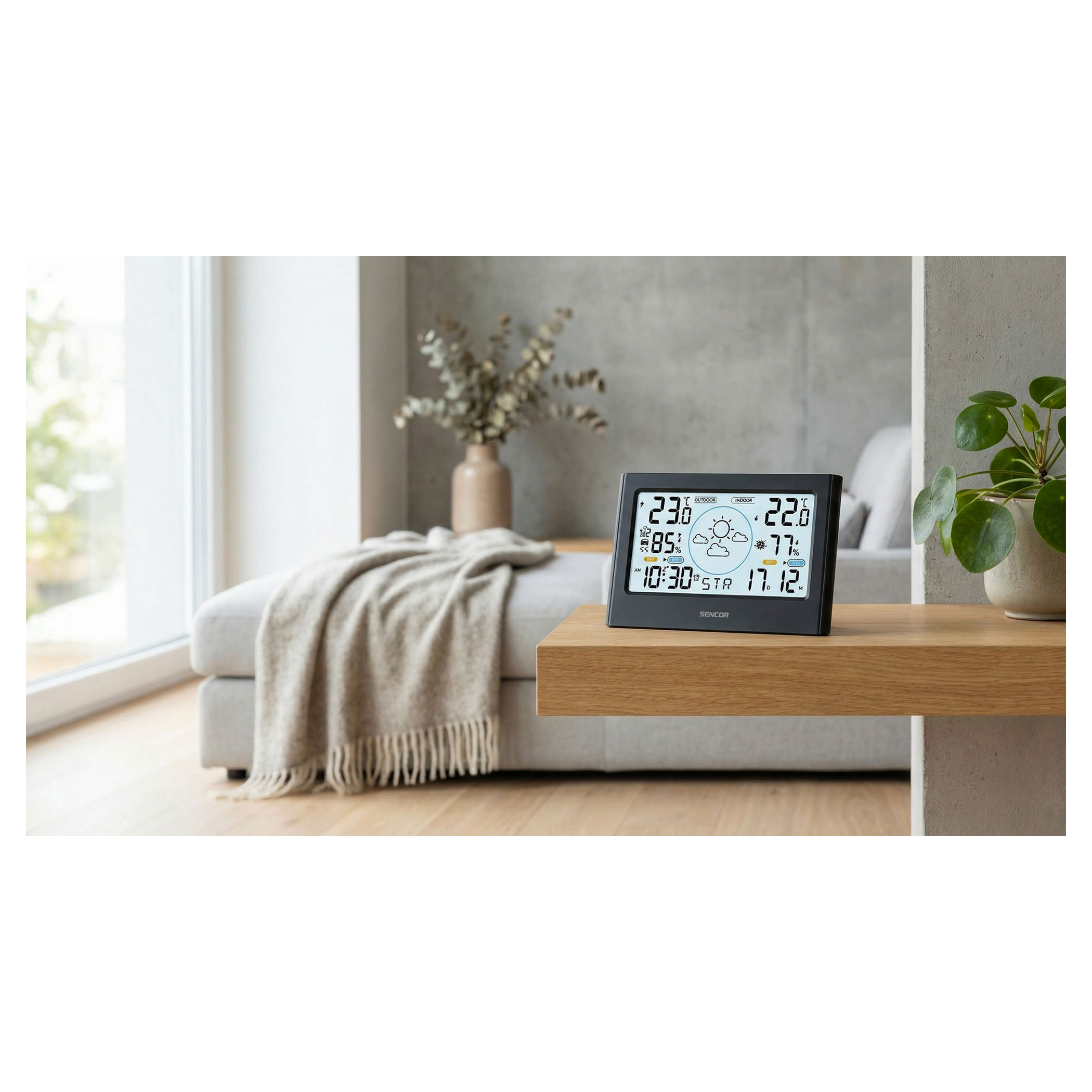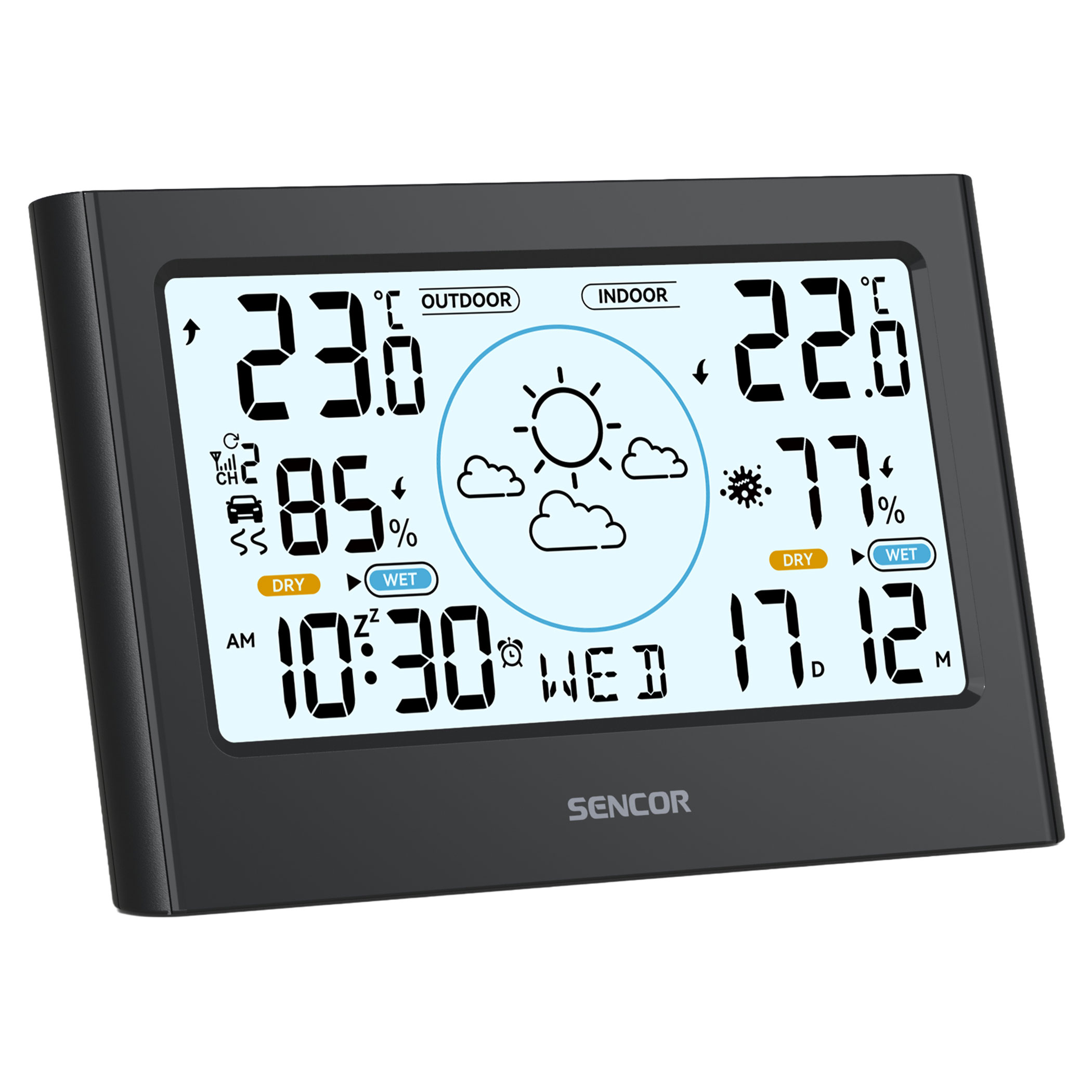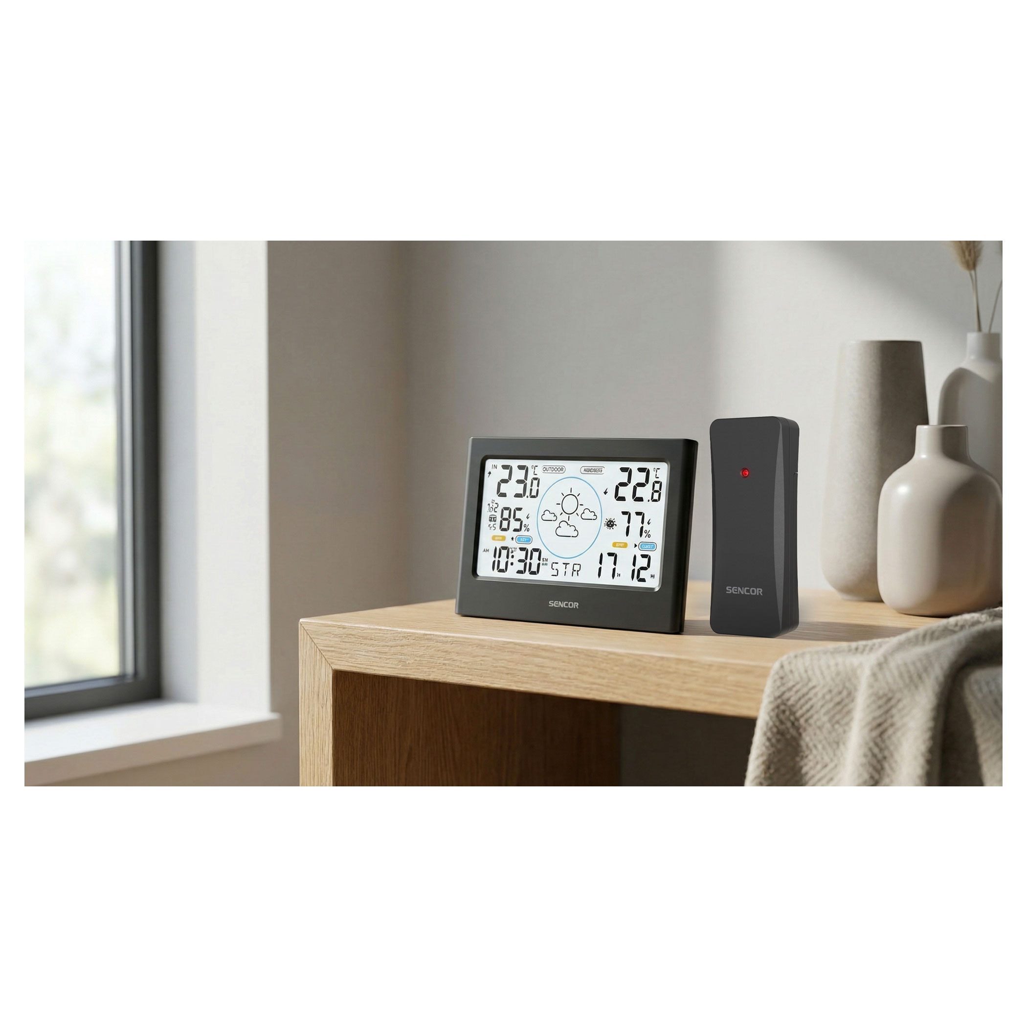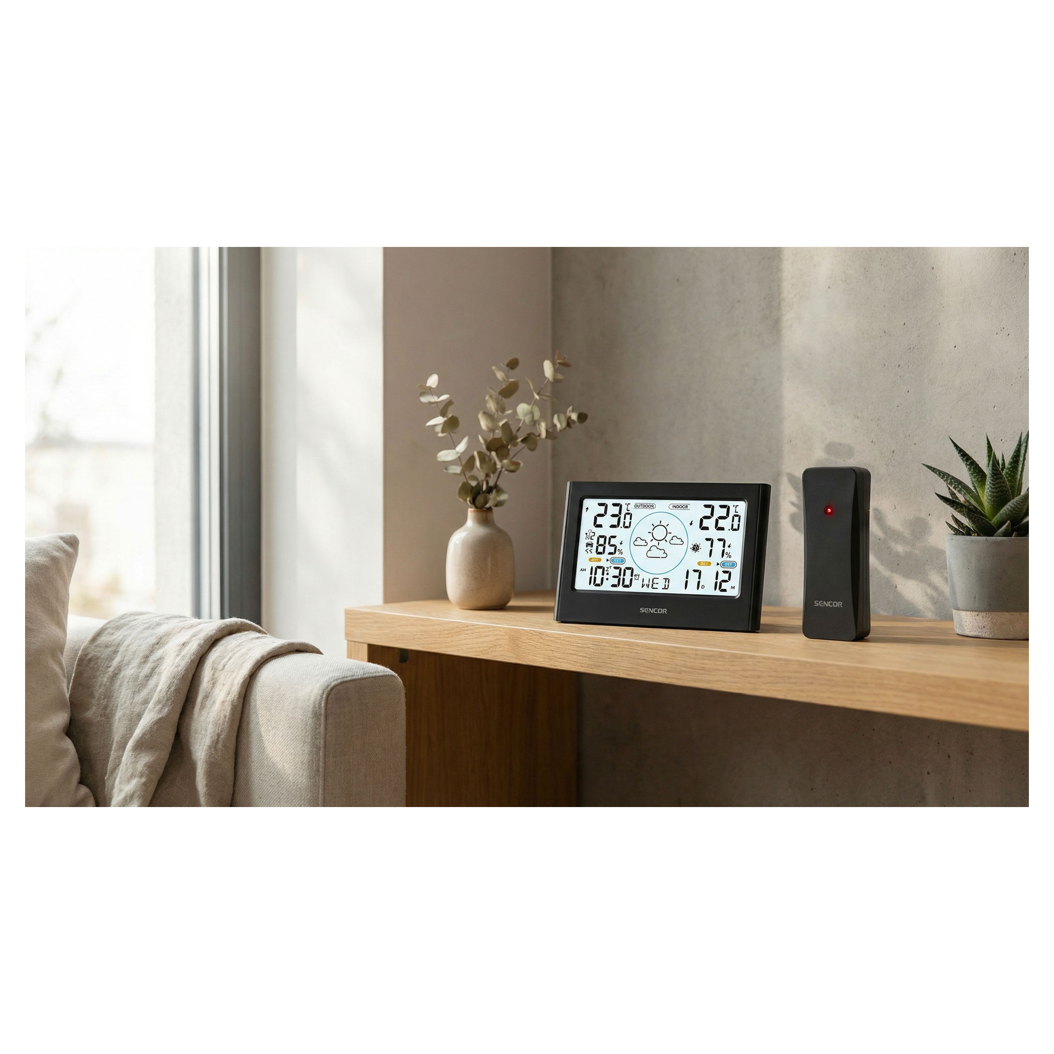A Sencor SWS 2600 meteorológiai állomás a vezeték nélküli érzékelőnek köszönhetően pontosan méri a hőmérsékletet és a páratartalmat. Figyelmeztet a jegesedésre, a penészkockázatra, és megjeleníti a komfortszintet is.