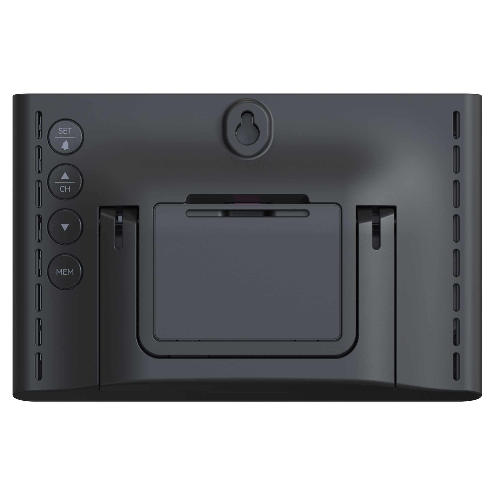 A vezeték nélküli érzékelővel felszerelt meteorológiai állomás méri a hőmérsékletet és a páratartalmat. Megjeleníti az időjárás‑előrejelzést, valamint komfortszint‑, penészkockázat‑ és csúszós út jelzőkkel rendelkezik. Akár 3 érzékelő is csatlakoztatható hozzá, amelyek mért adatai automatikusan válthatják egymást a kijelzőn.
