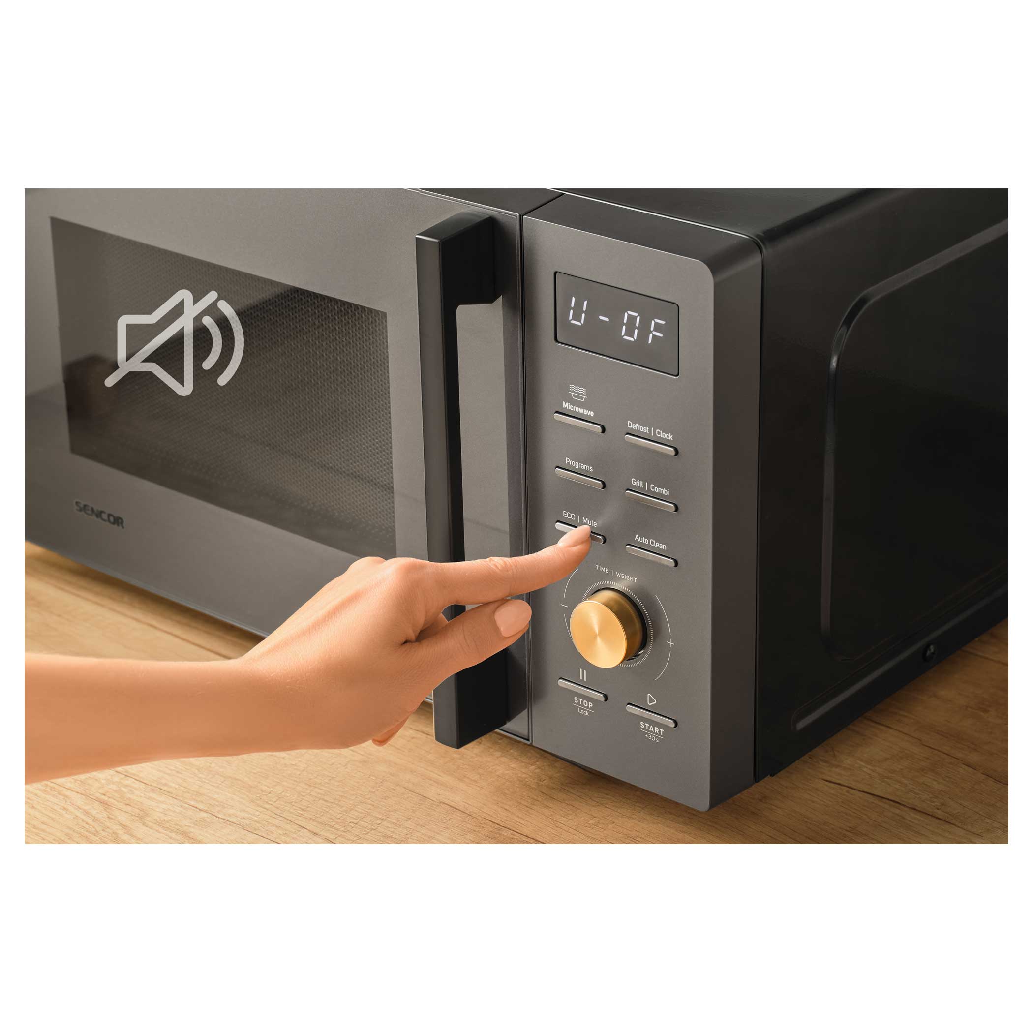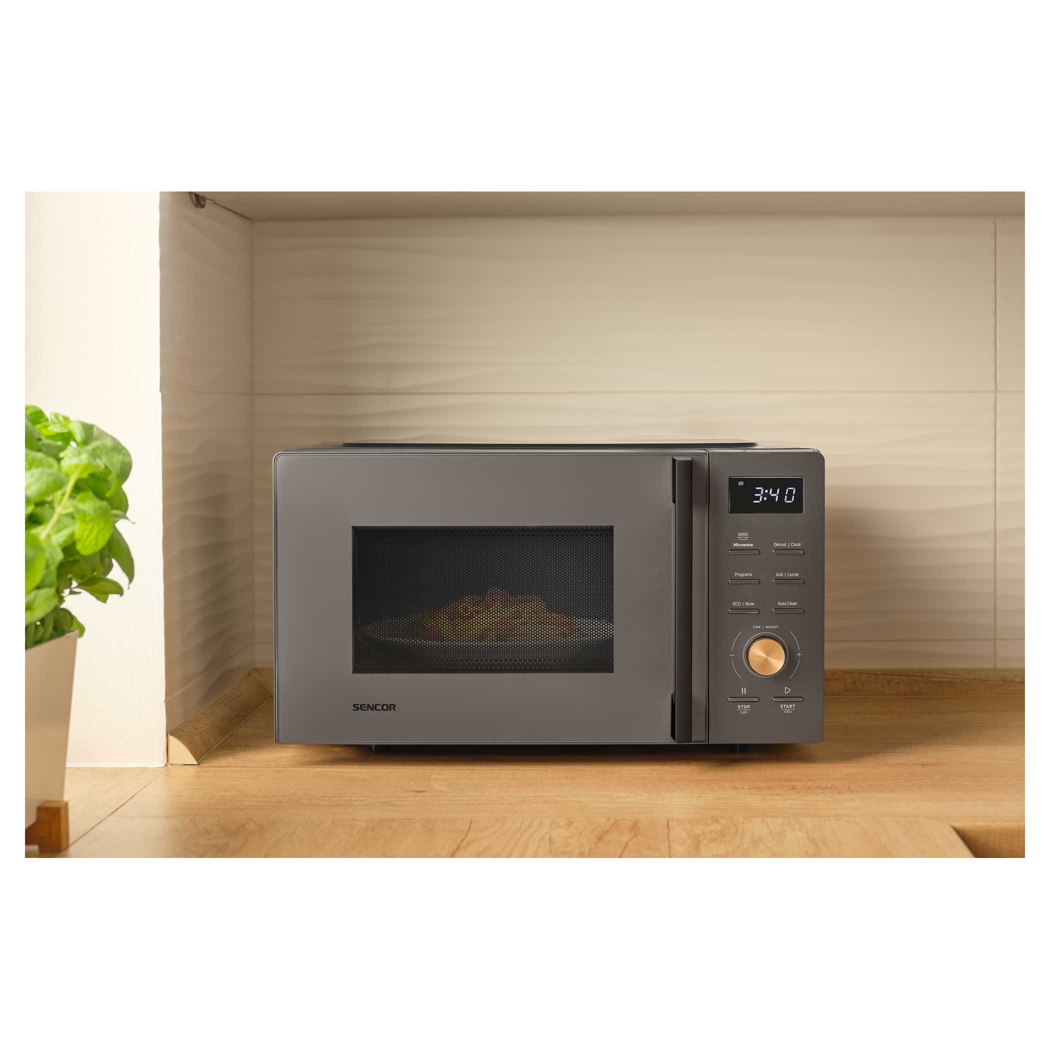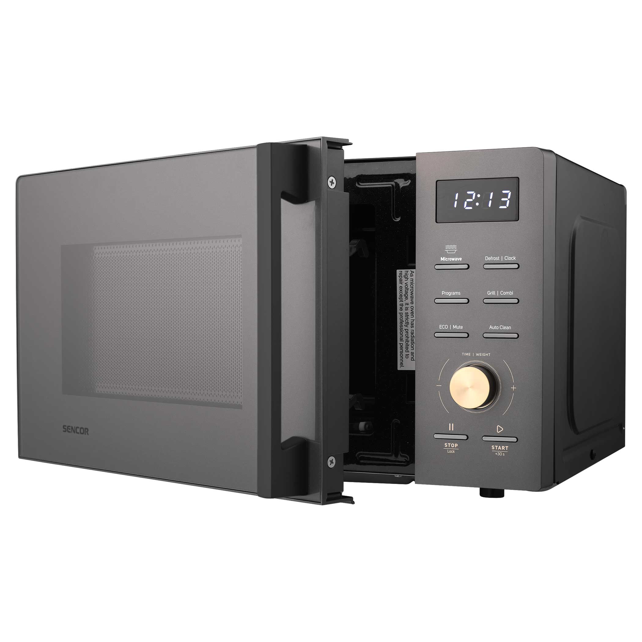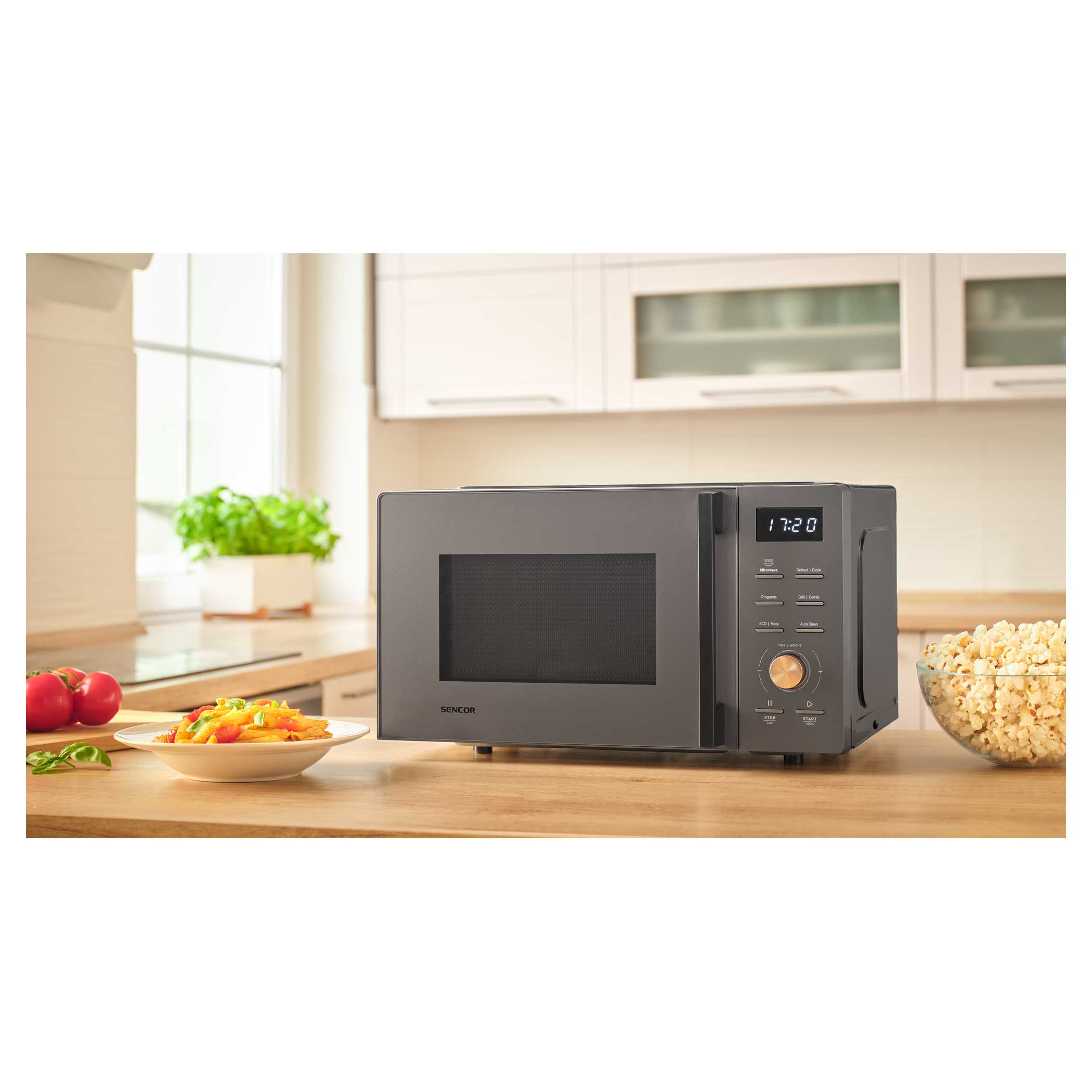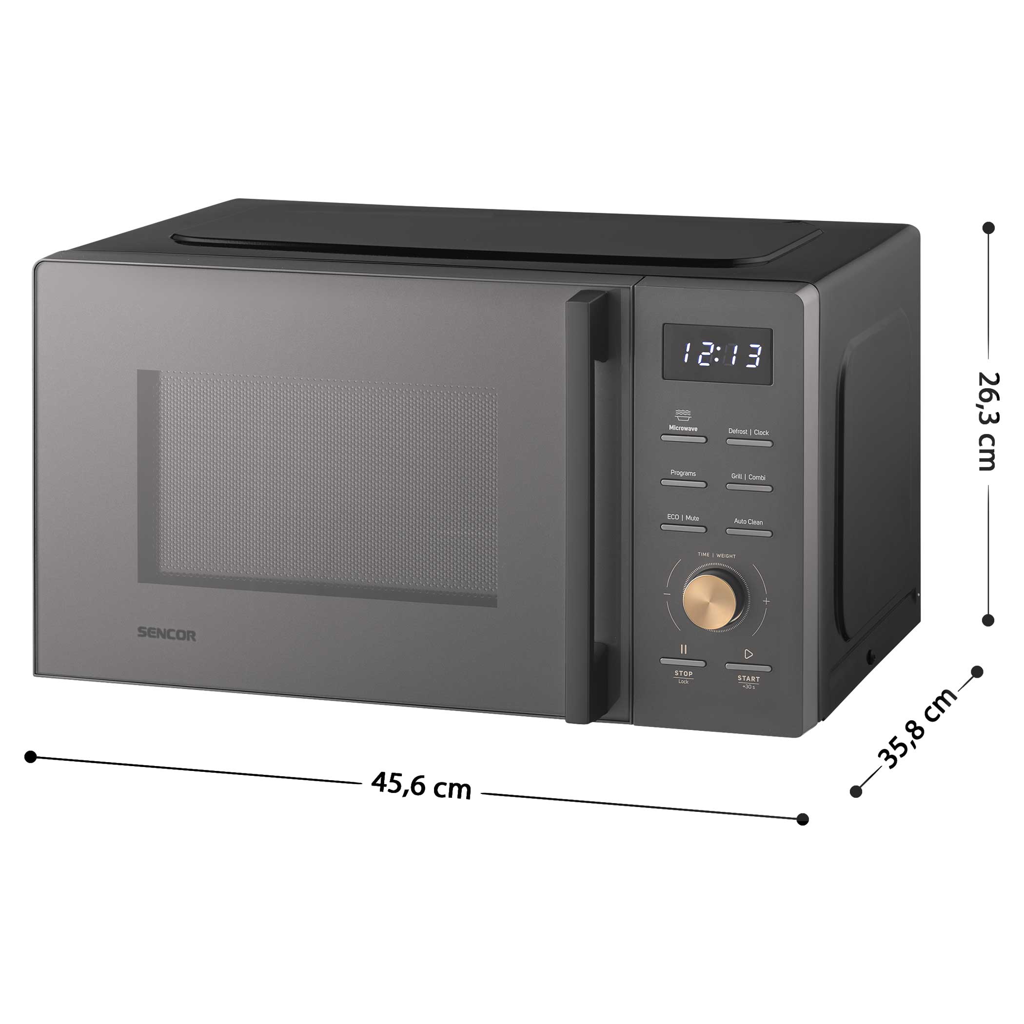 A Sencor SMW 5520BK mikrohullámú sütő grillel ideális választás mindazok számára, akik gyorsan és kényelmesen szeretnének főzni vagy ételt melegíteni. A modern dizájn és az elektronikus vezérlés kombinációja egyszerű használatot biztosít, miközben a 20 literes kapacitás lehetővé teszi akár nagyobb adagok elkészítését is. A beépített LED kijelző pontos időt és programinformációkat mutat, az ECO gomb pedig segít az energiahatékony üzemeltetésben, amikor a kijelzőt nem szeretnénk látni.