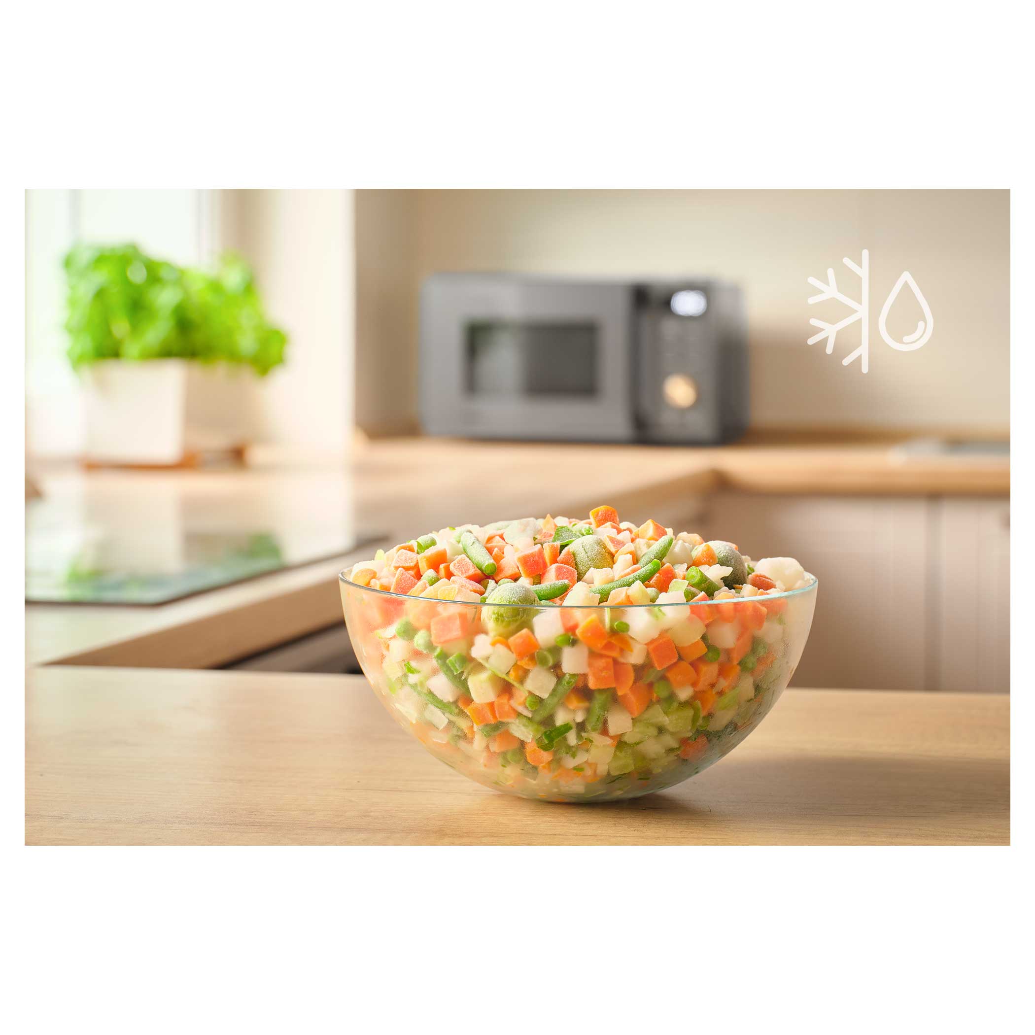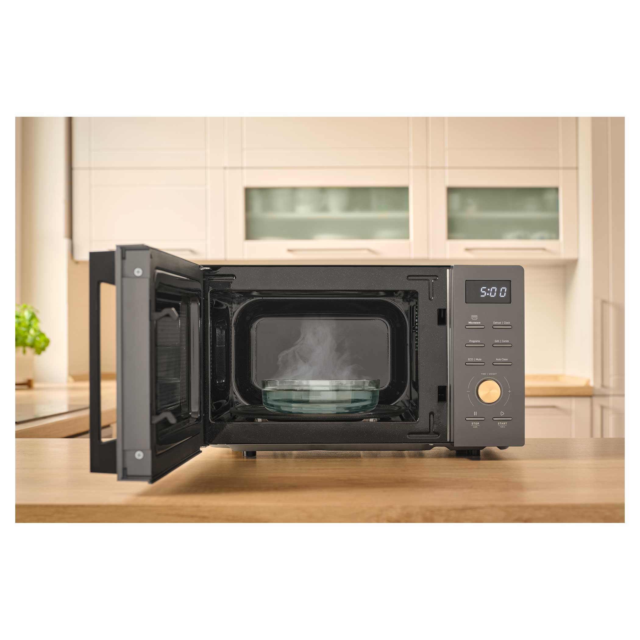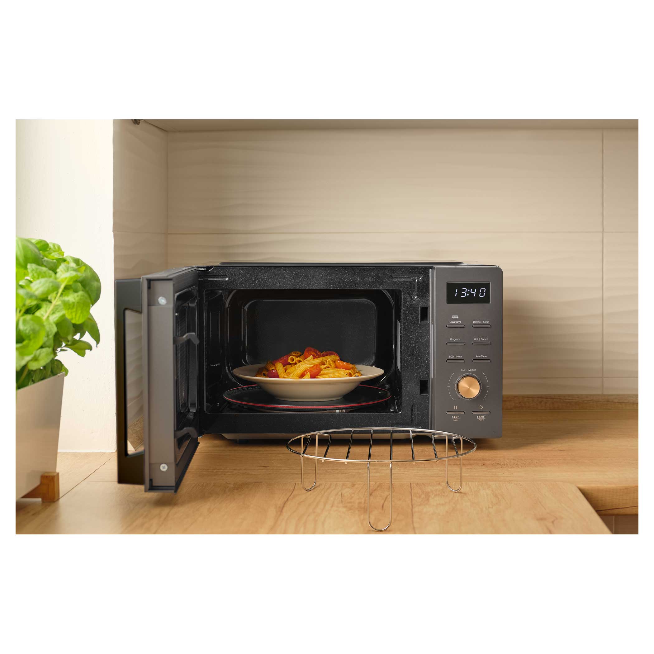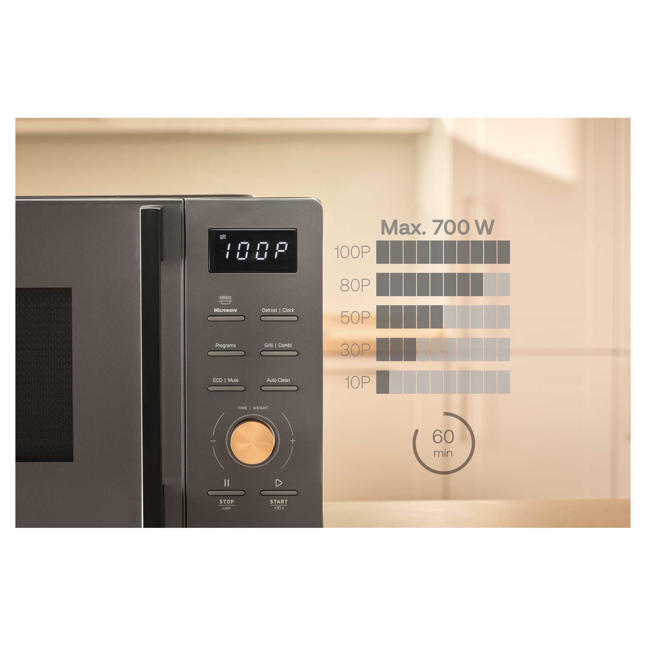 A készülék mikrohullámú fűtéssel és grill funkcióval rendelkezik, így nemcsak újramelegítésre, hanem egészséges és ízletes ételek készítésére is tökéletes. Az 5 teljesítménybeállítás, a két kombinált mikrohullámú és grill mód, valamint a kiolvasztás súly és idő szerint mind hozzájárulnak a rugalmassághoz a főzés során. A 8 előre beállított főzési program tovább egyszerűsíti a mindennapi használatot, míg a 60 perces időzítő és a hangjelzés biztosítja, hogy minden étel időben elkészüljön.