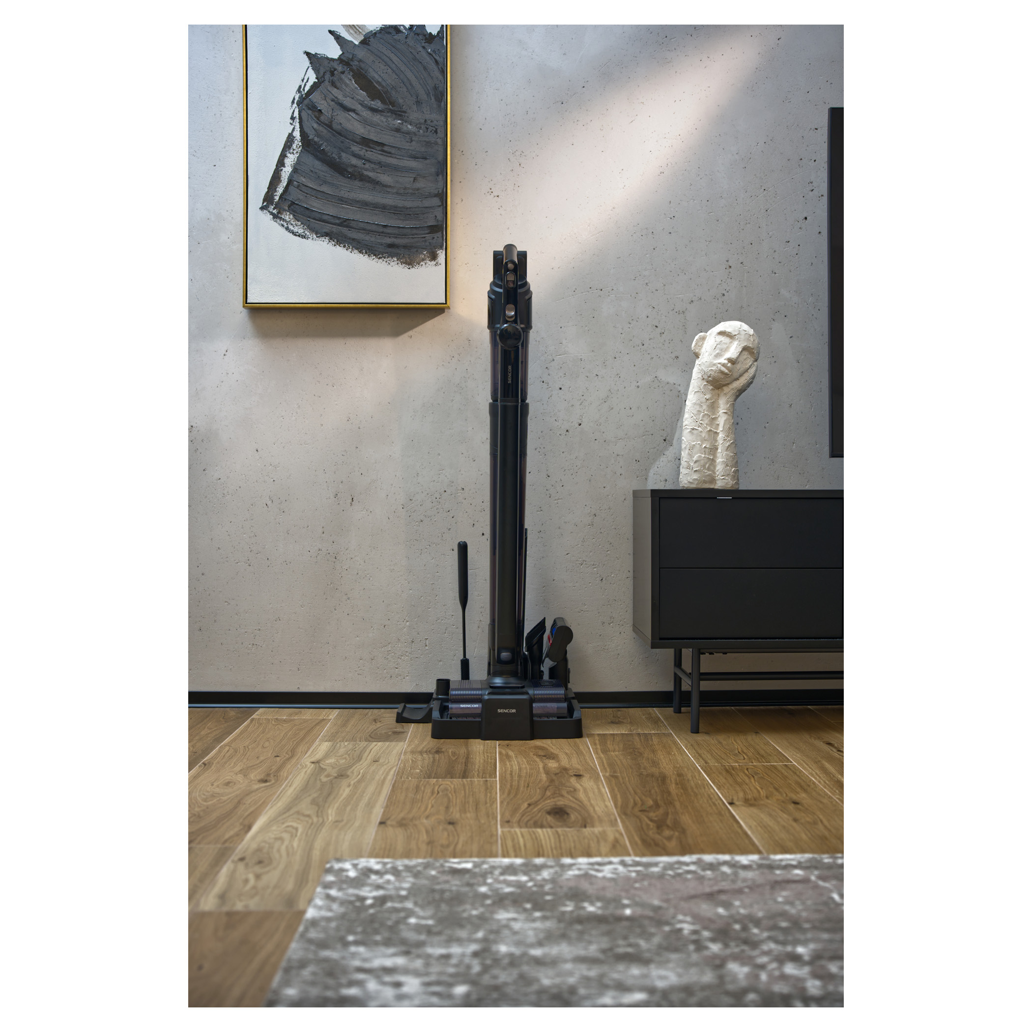 Az önálló Self-Cleaning funkció gondoskodik róla, hogy a porszívócső és a forgókefék minden használat után automatikusan kitisztuljanak. Nincs többé kellemetlen szennyeződés vagy lerakódás, a gép mindig higiénikusan tiszta és azonnal használatra kész. A töltő- és tárolóállomás nemcsak a kényelmes elhelyezést biztosítja, hanem automatikus meleglevegős szárítással is ellátja a keféket, így megelőzve a nedvesség okozta szagokat és baktériumképződést.