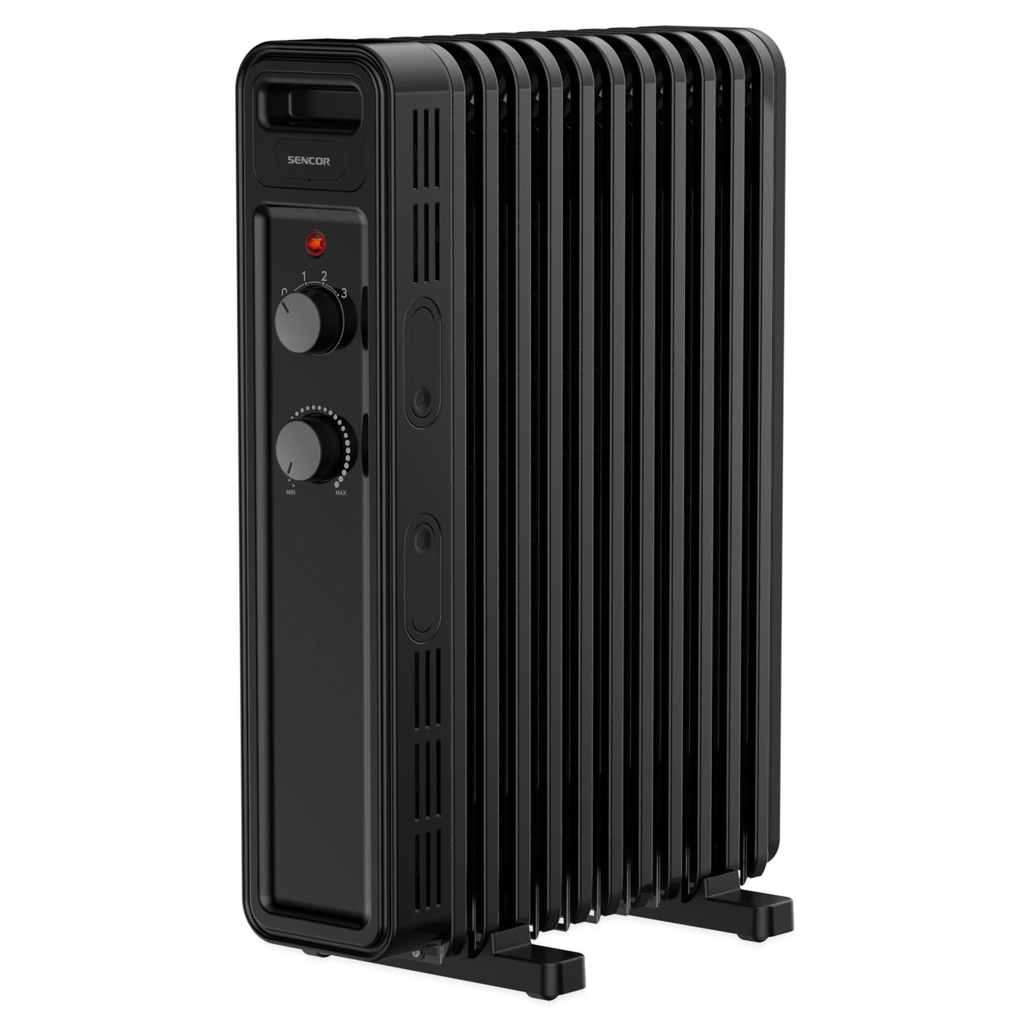 A Sencor SOH 3511 olajradiátor 2 300 W teljesítményt kínál három üzemmódban: 1 000 W, 1 300 W, és 2 300 W. Ezáltal pontosan az igényeidnek megfelelő hőmennyiséget állíthatod be. A 11 FLAT SHAPE fűtőelem gyors és egyenletes hőelosztást biztosít, így minden pillanatban élvezheted a kellemes meleget. A termosztátos vezérlés lehetővé teszi a kényelmes hőmérséklet-szabályozást.