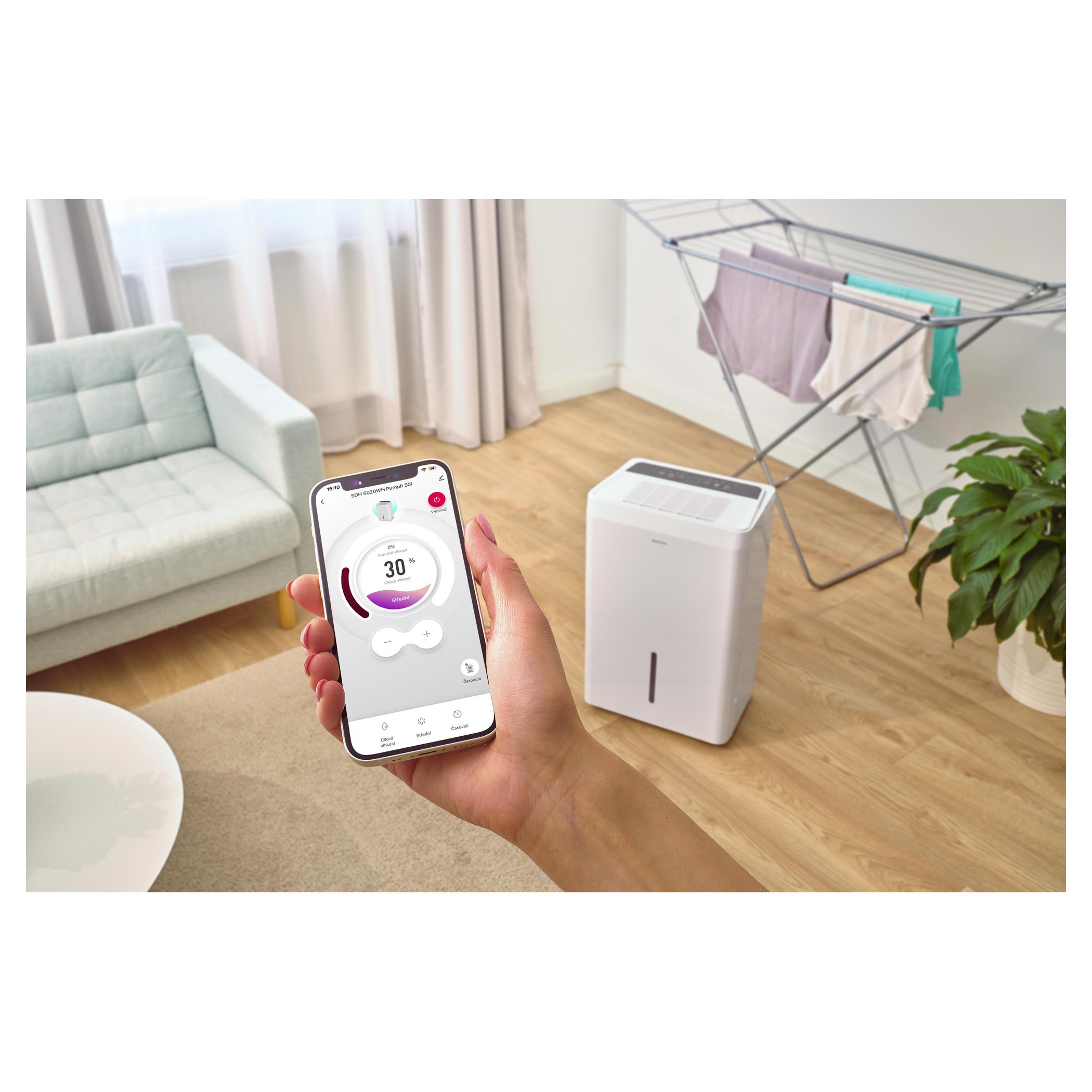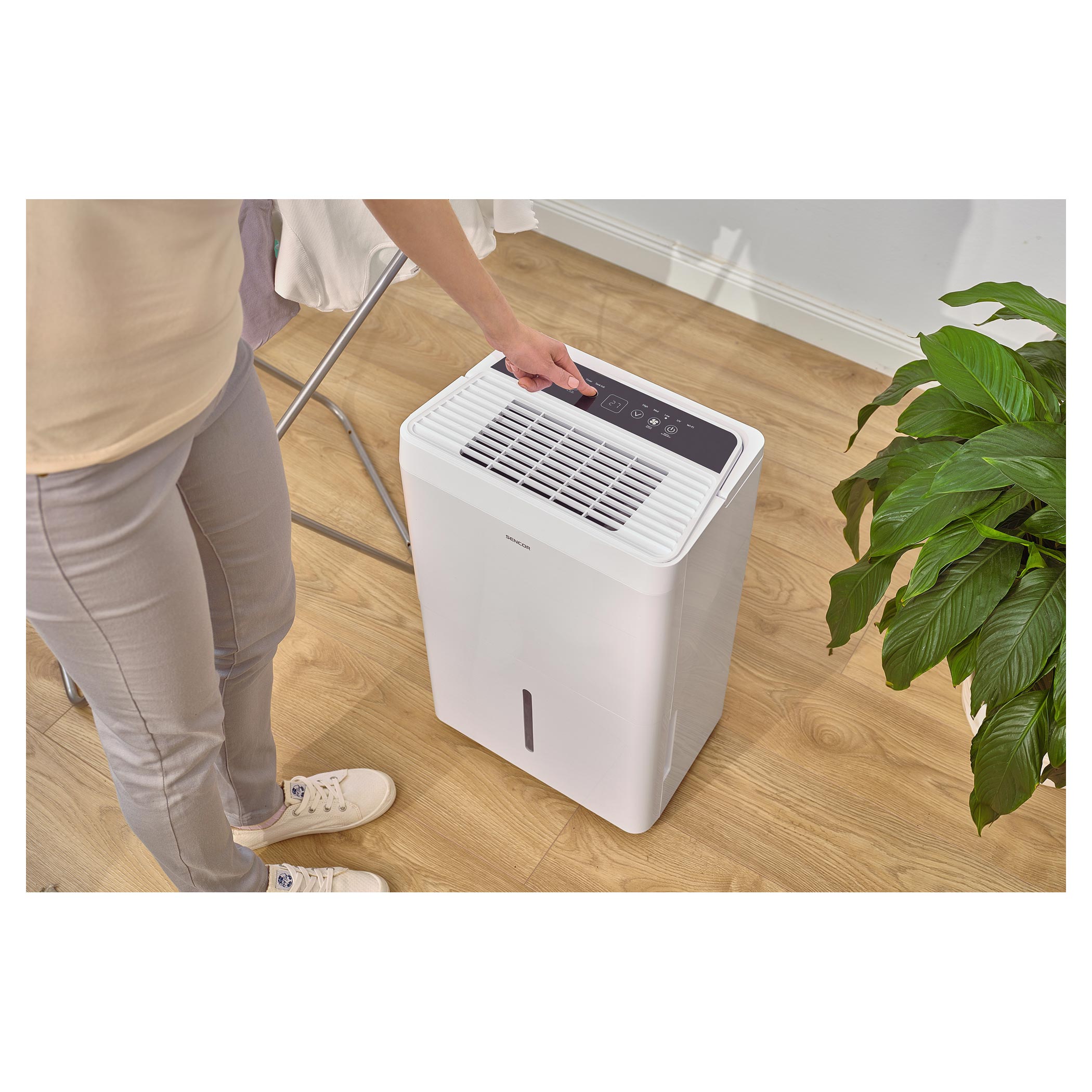 A Wi-Fi kapcsolatnak és a Sencor HOME alkalmazásnak köszönhetően a párátlanító távolról is vezérelhető okostelefonról, legyen szó akár iOS vagy Android rendszerről. Így mindig kényelmesen szabályozhatja a páratartalmat, beállíthatja az időzítőt (0–24 óra), vagy aktiválhatja a komfort üzemmódot. A készülék 3 fokozatú ventilátorral, pontos páratartalom-kijelzéssel és csendes működéssel (45–49 dB(A)) gondoskodik az optimális komfortérzetről. A HEPA H13 szűrő és az UV-C sterilizálás együttesen tisztítja a levegőt, kiszűrve az allergéneket, baktériumokat és kellemetlen szagokat.