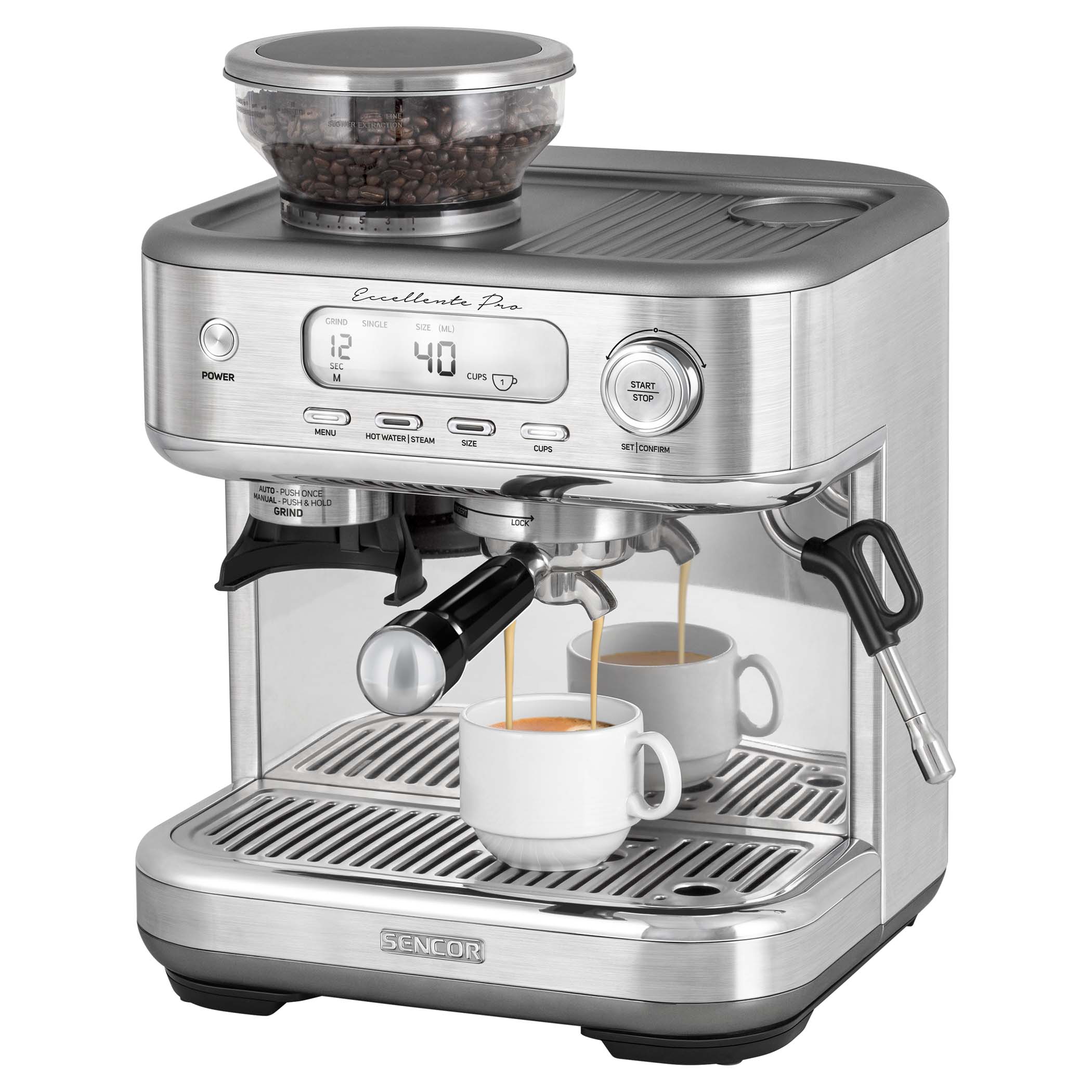 A kiváló kávé több fontos eljárás kombinációjának eredménye, amelyek közül az egyik a nyomás, a 15 bar. És mi teszi lehetővé a megfelelő nyomást a kávégyártásban? Az őrölt kávé és az előfőzés megfelelő összenyomása sok összetevőt szabadít fel a kávéból, amelyek az eszpresszót tökéletes illatú és ízléses csésze kávévá teszik. Az előfőzés alacsony nyomáson megy végbe, ami a kávé duzzanatát okozza, majd teljes nyomás alatt forró víz kezd átfolyni a kávén. A SES 6050SS készülékbe épített kúpos köszörűkövekkel ellátott darálójával 15 különböző őrlési finomságot állíthat be az ízlésének és a kávé pörkölésének megfelelően.
