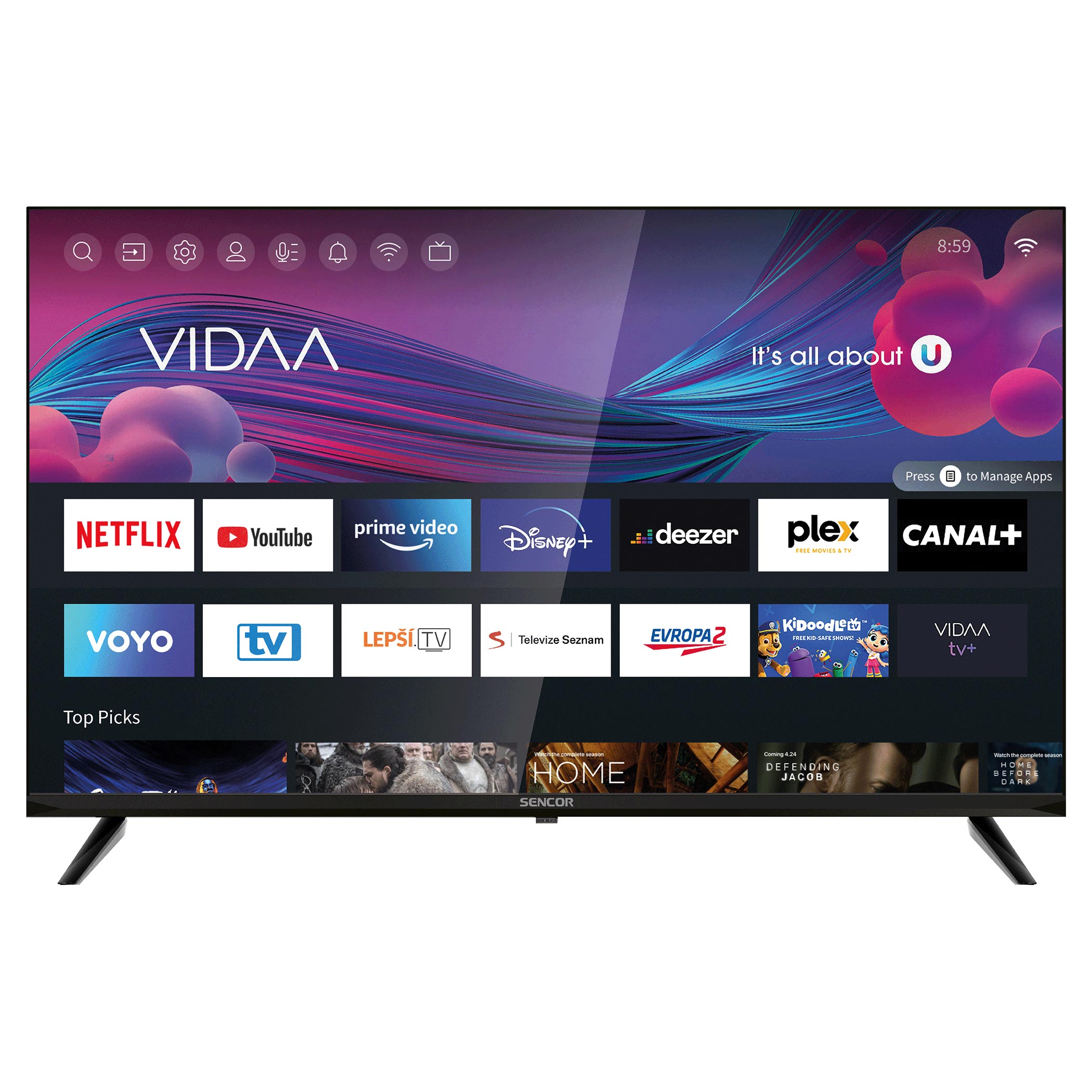 A Sencor SLE 32S700TCS készülék különböző smart funkciókkal lett felszerelve. Beépítésre került a könnyebb és felhasználóbarát vezérlés érdekében a Netflix, Disney+, Prime Video, Youtube applikációk. A stabil működtetést HbbTV, Wi-Fi modul (2,4 GHz), DLNA támogatás, garantálja Önnek, valamint lehetősége van a Wifi képtükrözésre is