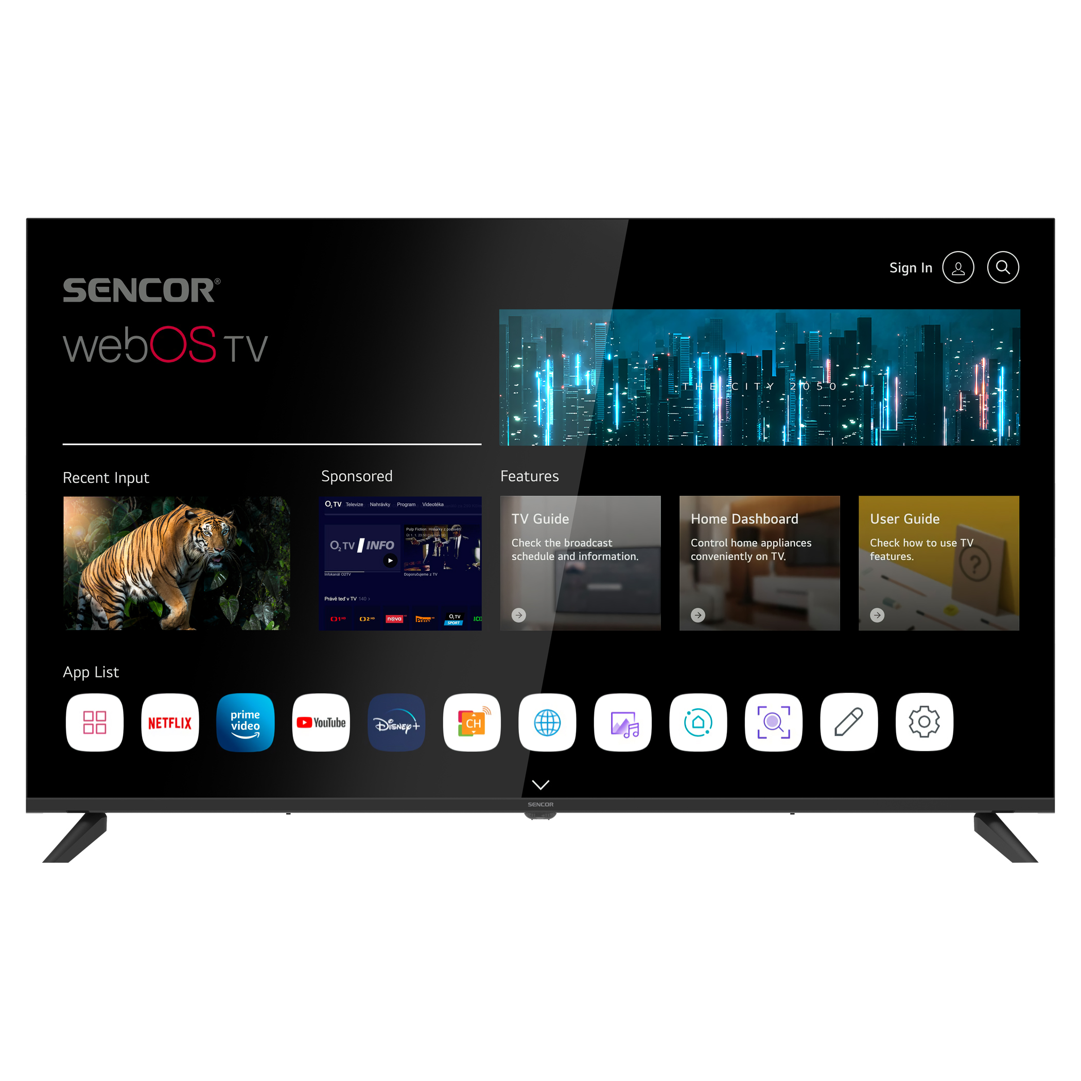 A Sencor SLE 50US802TCSB készülék különböző smart funkciókkal lett felszerelve. Beépítésre került a könnyebb és felhasználóbarát vezérlés érdekében a ONEPLAY Netflix, Prime Video, Youtube, HBO MAX, DISNEY+, Spotify, Deezer, Apple Tv applikációk. A stabil működtetést HbbTV, Wi-Fi modul (2,4 GHz), DLNA támogatás, garantálja.