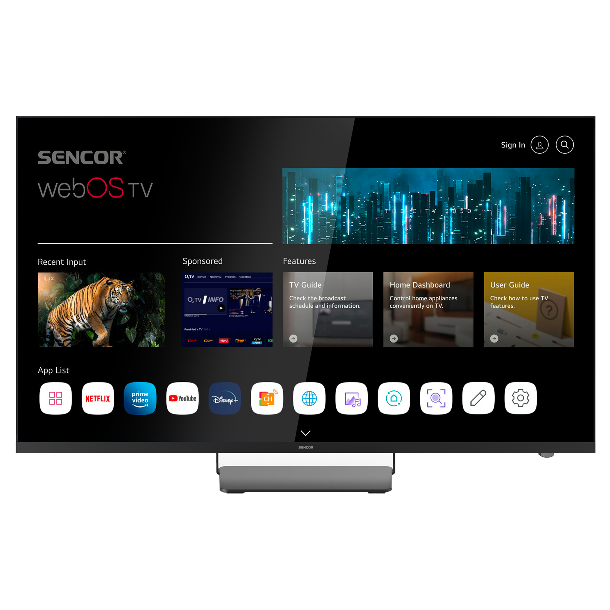 webOS SMART TV 22 interfészONEPLAY HBO MAX, DISNEY+, Netflix, Apple TV, Prime Video, Skylink live TV, Youtube, Spotify, Deezer