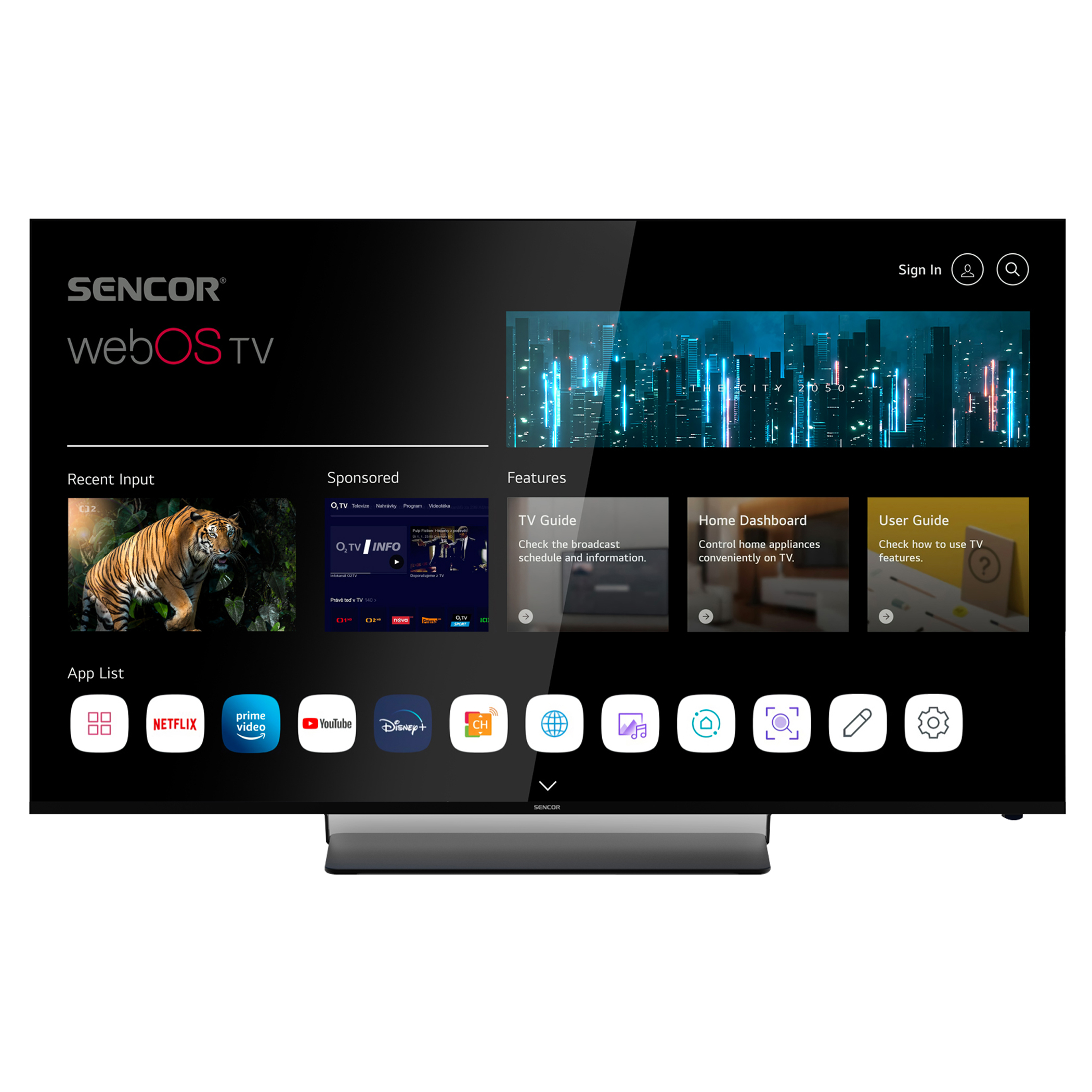 webOS SMART TV 22 interfészHBO MAX, DISNEY+, Netflix, Apple TV, Prime Video, Skylink live TV, Youtube, Spotify, Deezer