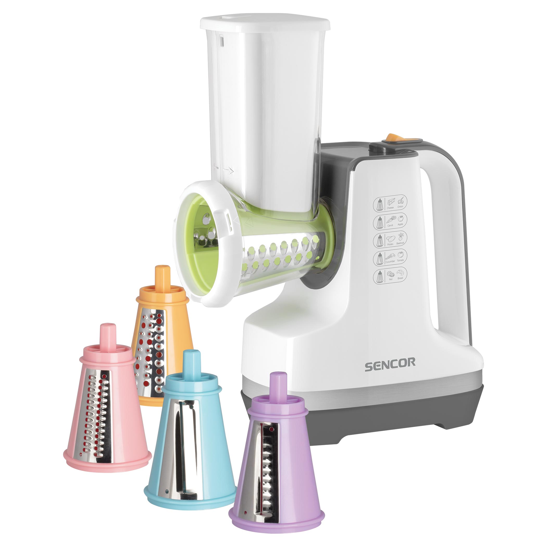 A Sencor SSG 4500WH segítségével könnyedén apríthatsz, szeletelhetsz, reszelhetsz, vagy akár fagylalt alapot készíthetsz, amit csak a fagyasztóba kell tenned. Pillanatok alatt előkészítheted a különböző zöldségeket salátákhoz, az 5 cserélhető betétnek köszönhetően pedig különböző alakú ételeket készíthetsz, de dekorációs célokra is felhasználhatod őket. A csúszásmentes talpak biztosítják, hogy a készüléket könnyedén és biztonságosan használhatod.