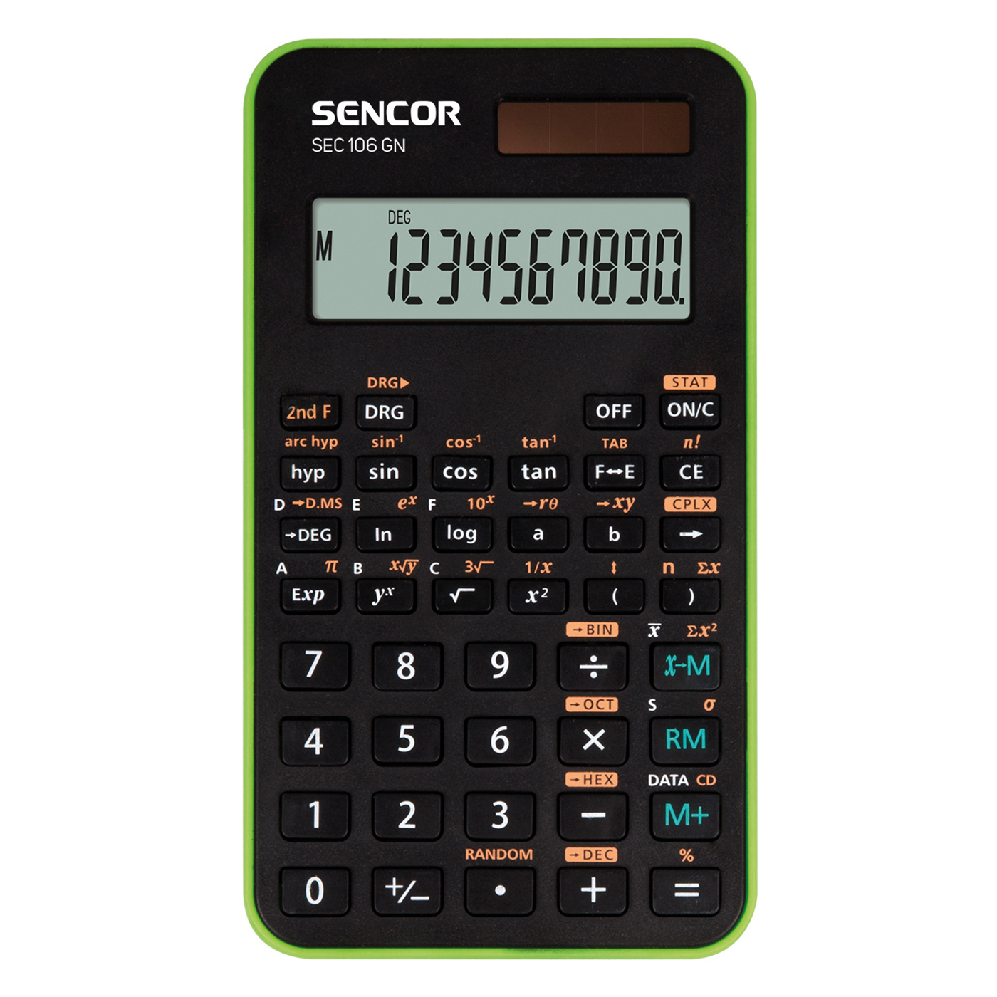 A Sencor SEC 106 egy 10 karakteres tudományos számológép kompakt méretben. 56 matematikai művelettel, nagyméretű egysoros LCD kijelzővel, kemény csúszó tokban. A készülék segítségével lehetőség van többek között 2-es, 8-as és 16-os számrendszerben számolni, továbbá megoldható vele különböző statisztikai számítások, szögfüggvény, hiperbola és logaritmus számítás is. Használata rendkívül egyszerű, kijelzője pedig könnyen olvasható.